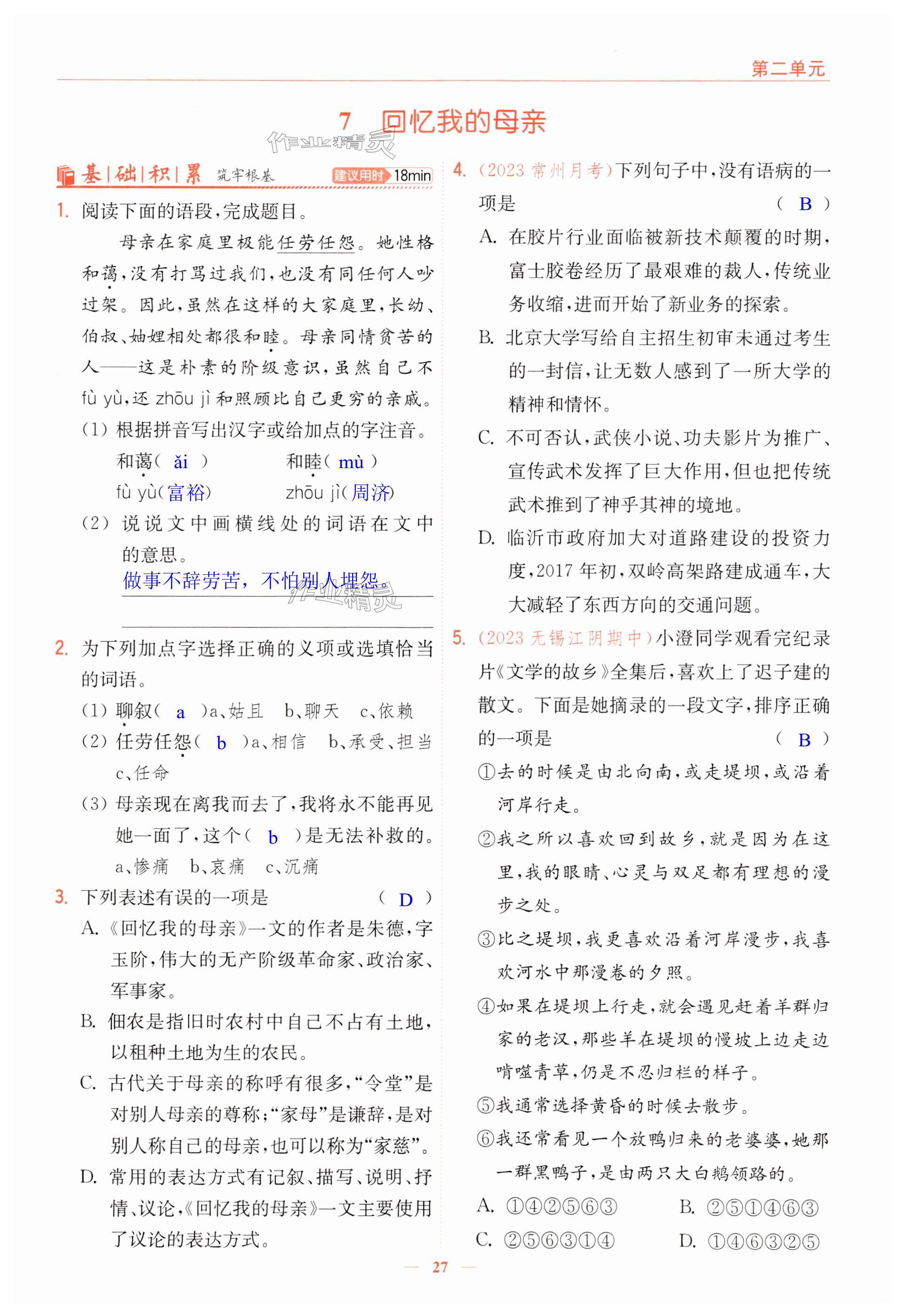 注:目前有些书本章节名称可能整理的还不是很完善,但都是按照顺序排列的,请同学们按照顺序仔细查找。练习册 2024年南通小题课时作业本八年级语文上册人教版 答案主要是用来给同学们做完题方便对答案用的,请勿直接抄袭。