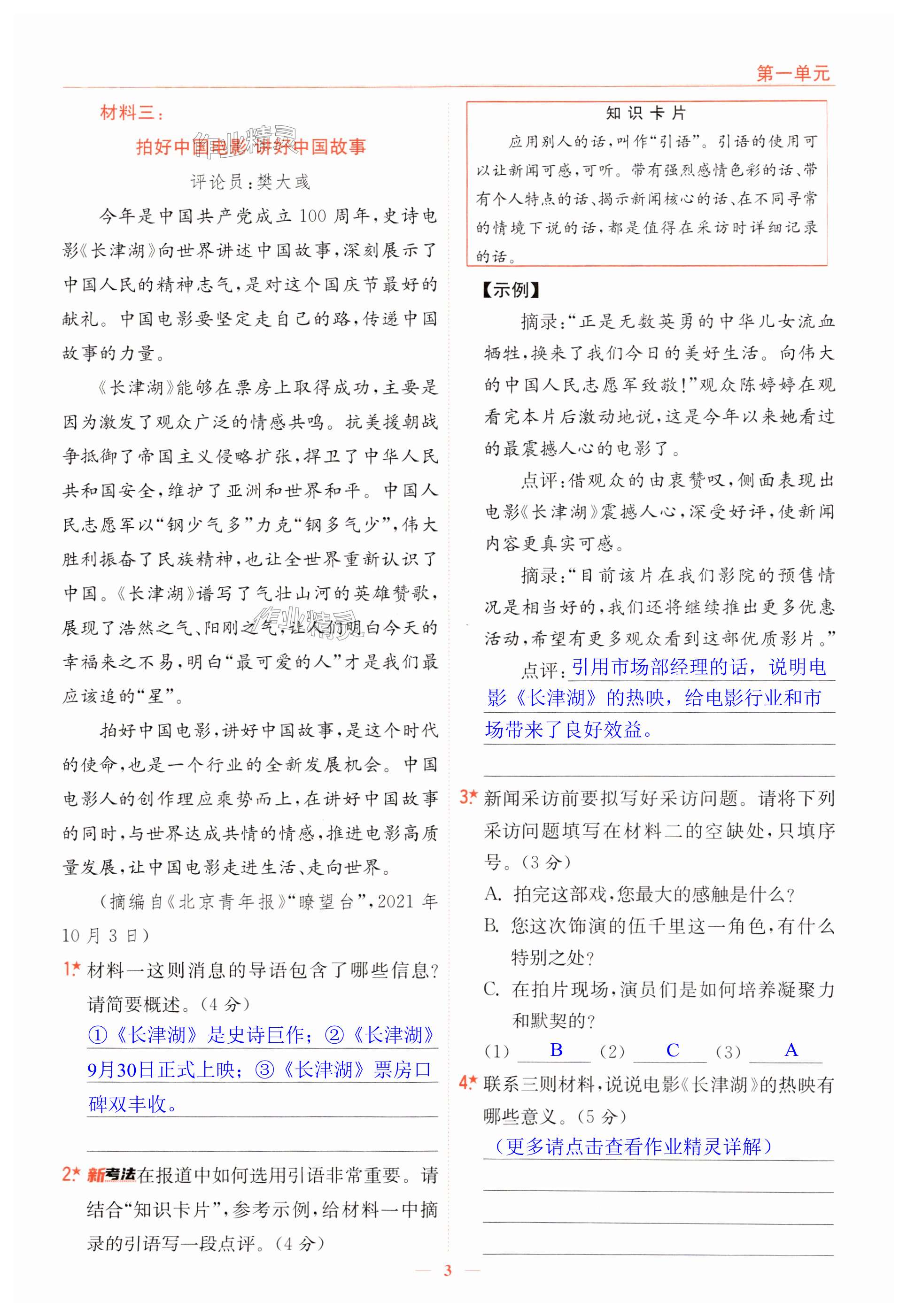 注:目前有些书本章节名称可能整理的还不是很完善,但都是按照顺序排列的,请同学们按照顺序仔细查找。练习册 2024年南通小题课时作业本八年级语文上册人教版 答案主要是用来给同学们做完题方便对答案用的,请勿直接抄袭。
