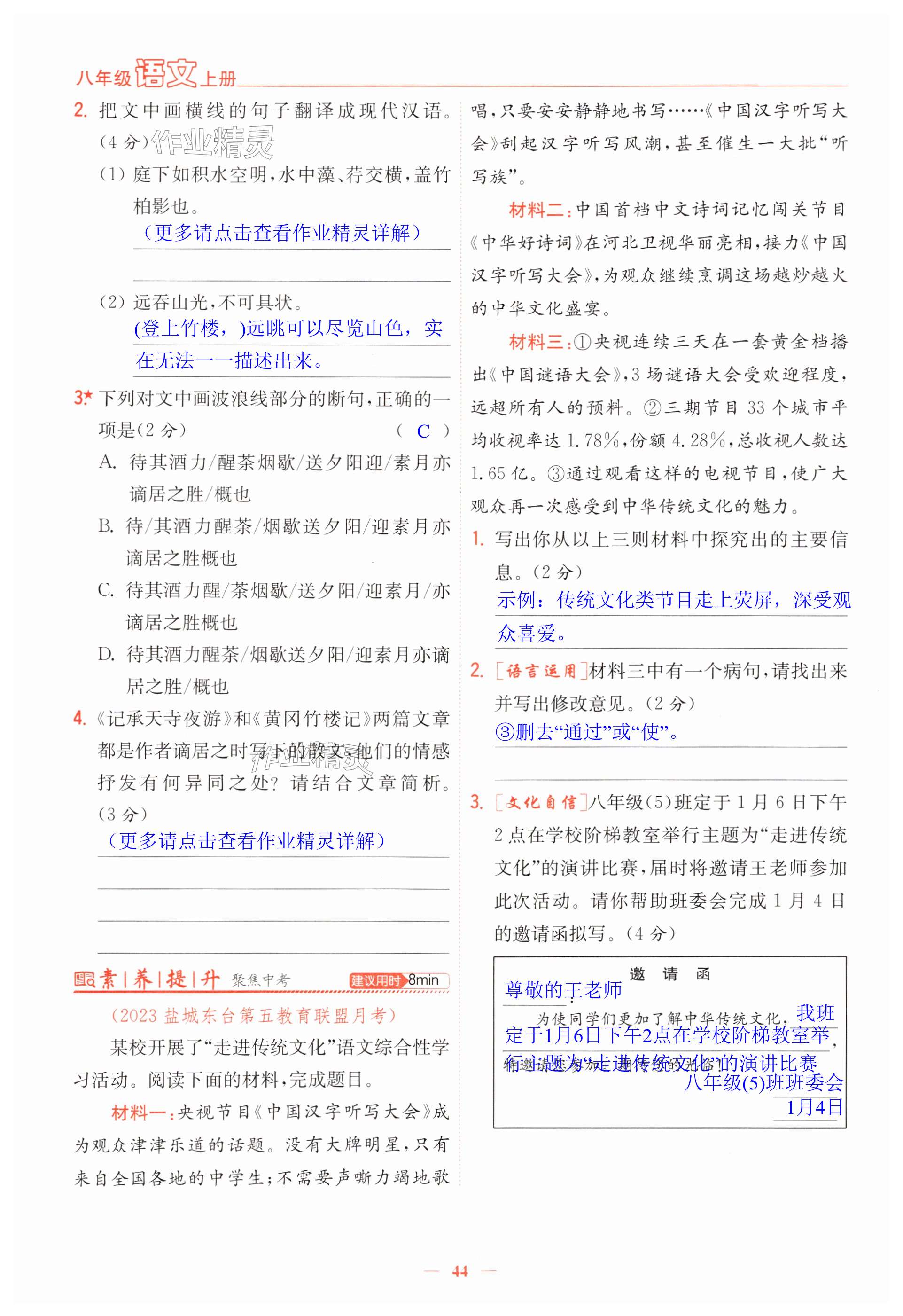 注:目前有些书本章节名称可能整理的还不是很完善,但都是按照顺序排列的,请同学们按照顺序仔细查找。练习册 2024年南通小题课时作业本八年级语文上册人教版 答案主要是用来给同学们做完题方便对答案用的,请勿直接抄袭。