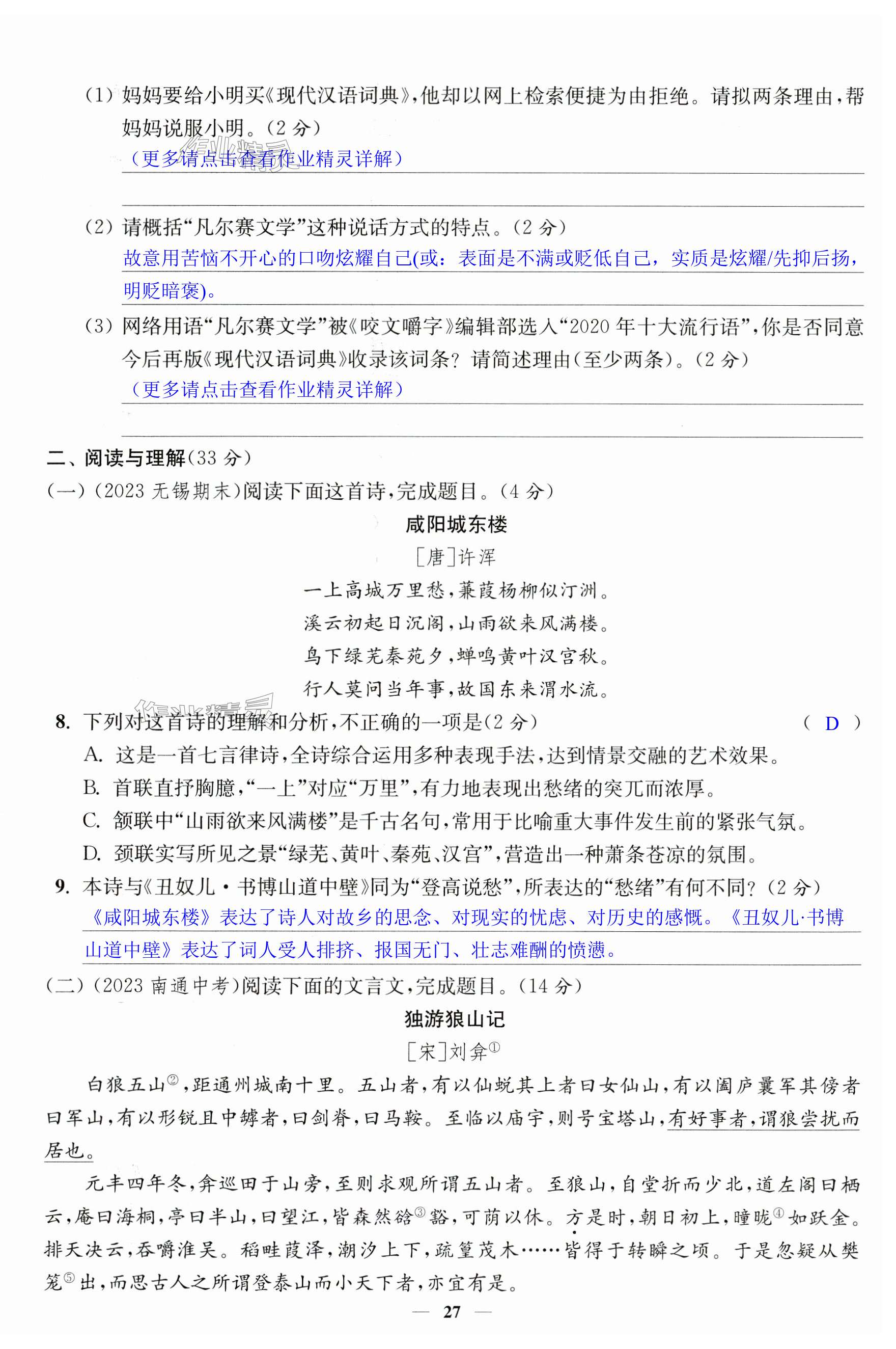注:目前有些书本章节名称可能整理的还不是很完善,但都是按照顺序排列的,请同学们按照顺序仔细查找。练习册 2024年南通小题课时作业本九年级语文上册人教版 答案主要是用来给同学们做完题方便对答案用的,请勿直接抄袭。