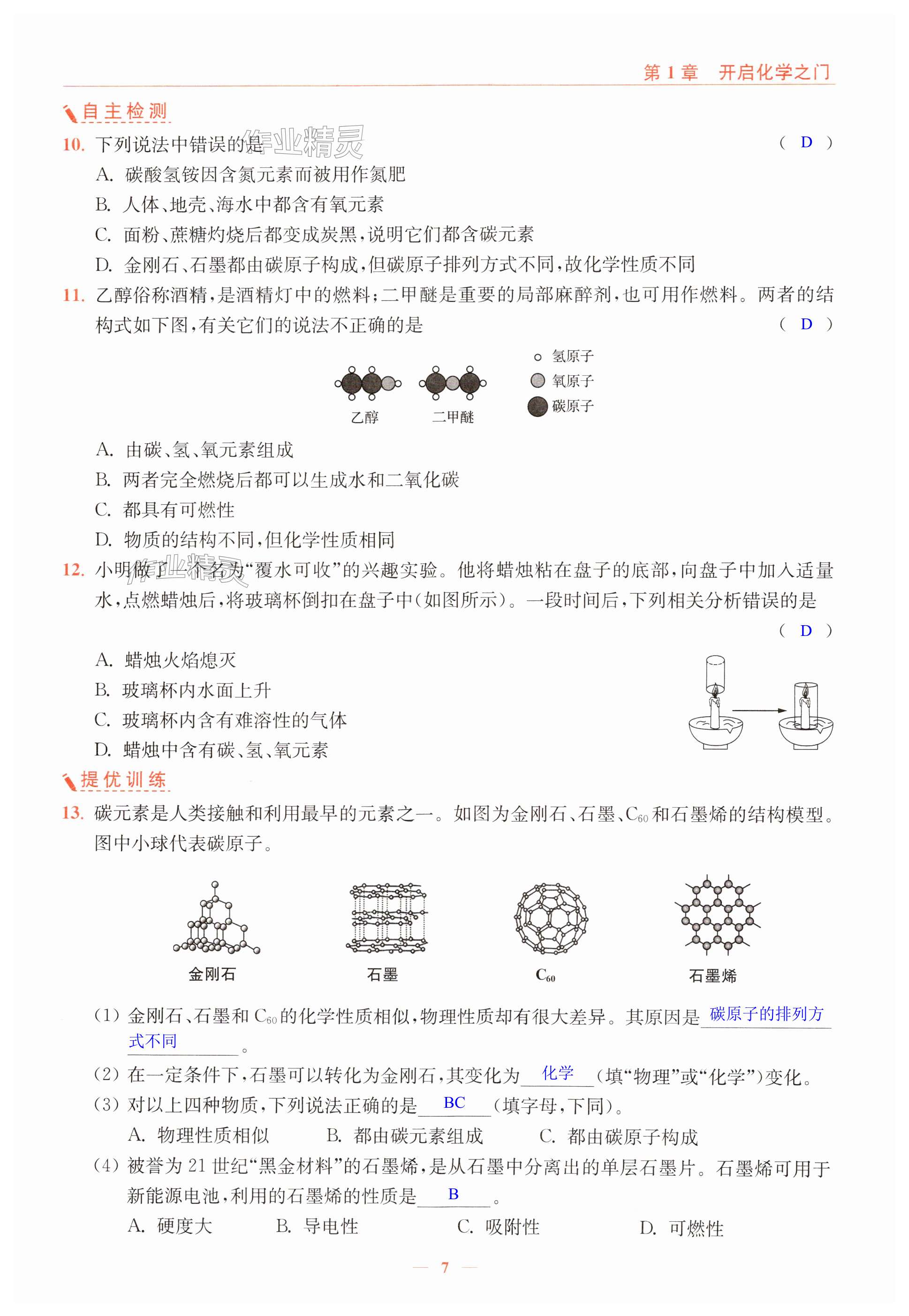 注:目前有些书本章节名称可能整理的还不是很完善,但都是按照顺序排列的,请同学们按照顺序仔细查找。练习册 2024年南通小题课时作业本九年级化学上册沪教版 答案主要是用来给同学们做完题方便对答案用的,请勿直接抄袭。