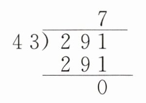 (1)$\begin{array}{r} 7 \\ 43\enclose{longdiv}{291} \\ 291 \\ \hline 0 \end{array} $