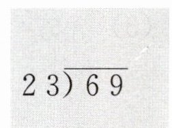 (1)$\begin{array}{r} \\ 23\enclose{longdiv}{69} \end{array} $ $\begin{array}{r} \\ 23\enclose{longdiv}{62} \end{array} $