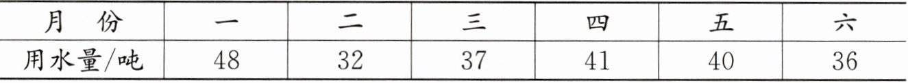 | 用水量/吨 | 48 | 32 | 37 | 41 | 40 | 36 |