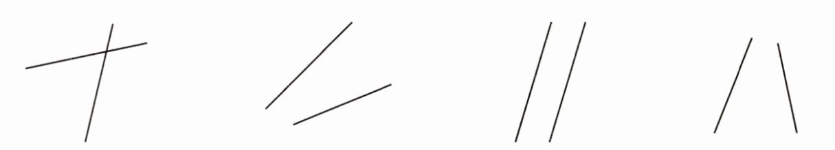 1. 在互相平行的两条直线下面画“√”,不平行的画“×”。