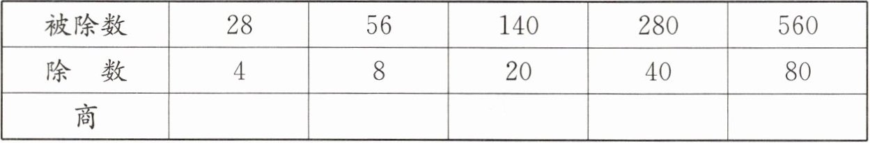 | 被除数 | 28 | 56 | 140 | 280 | 560 |