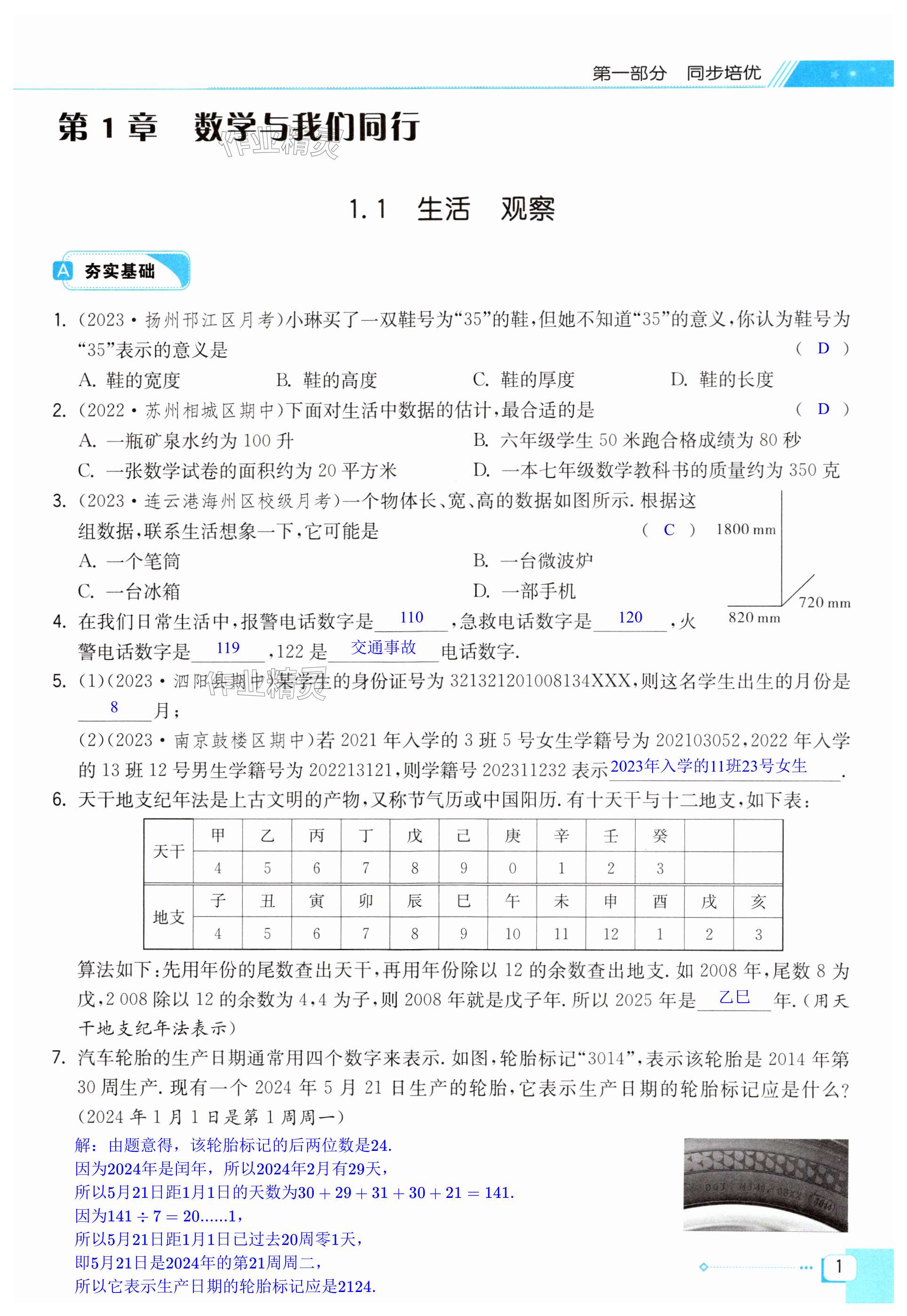 注:目前有些书本章节名称可能整理的还不是很完善,但都是按照顺序排列的,请同学们按照顺序仔细查找。练习册 2024年领先一步三维提优七年级数学上册苏科版 答案主要是用来给同学们做完题方便对答案用的,请勿直接抄袭。