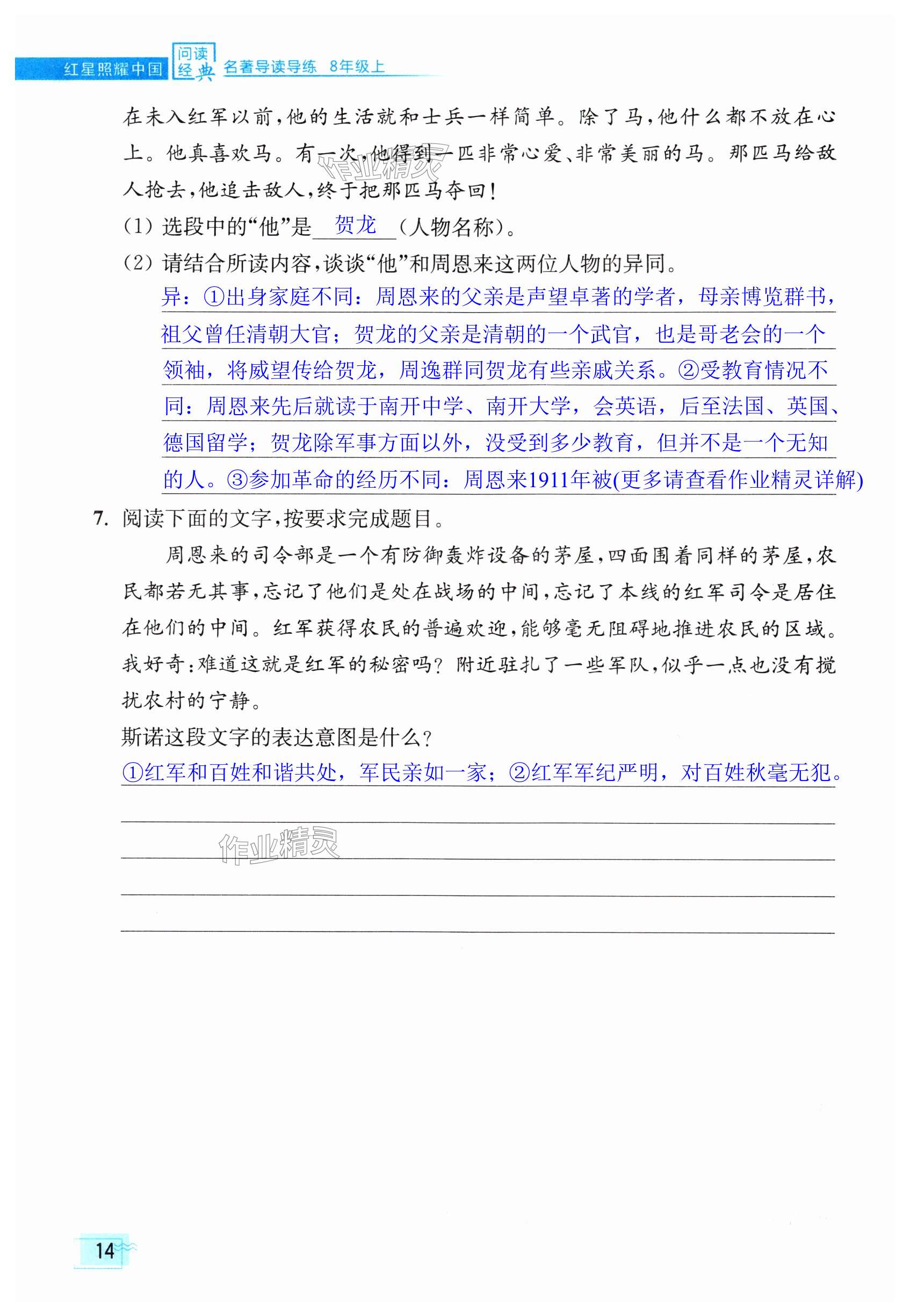 注:目前有些书本章节名称可能整理的还不是很完善,但都是按照顺序排列的,请同学们按照顺序仔细查找。练习册 2024年问读经典名著导读导练八年级上册人教版 答案主要是用来给同学们做完题方便对答案用的,请勿直接抄袭。