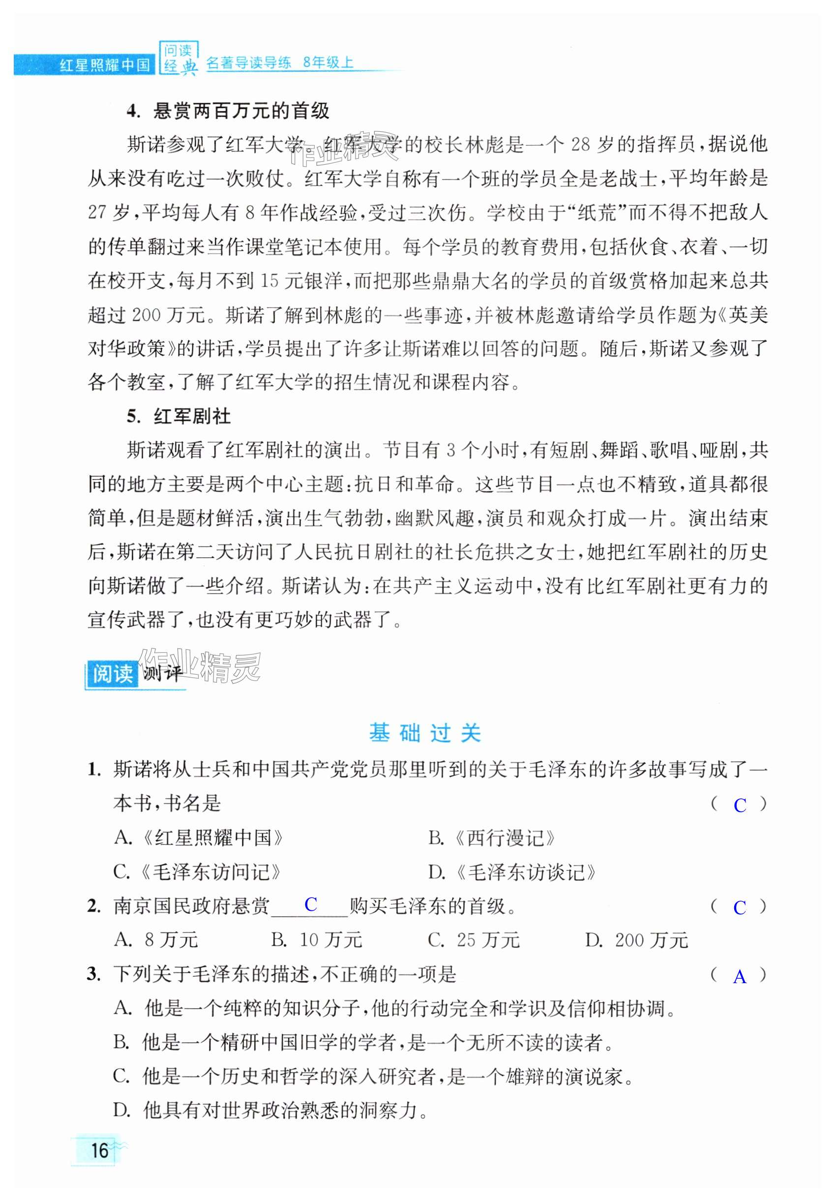 注:目前有些书本章节名称可能整理的还不是很完善,但都是按照顺序排列的,请同学们按照顺序仔细查找。练习册 2024年问读经典名著导读导练八年级上册人教版 答案主要是用来给同学们做完题方便对答案用的,请勿直接抄袭。
