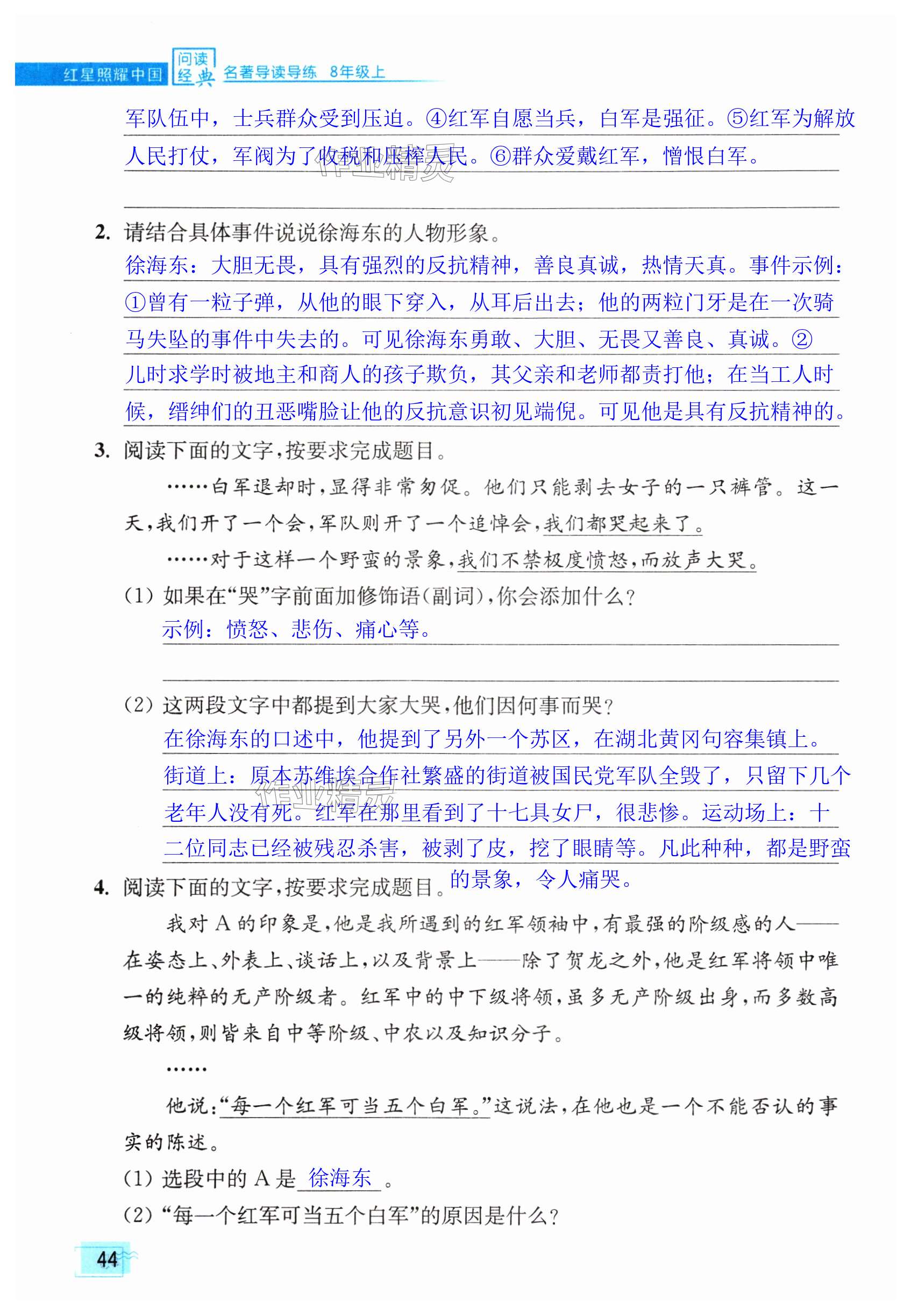 注:目前有些书本章节名称可能整理的还不是很完善,但都是按照顺序排列的,请同学们按照顺序仔细查找。练习册 2024年问读经典名著导读导练八年级上册人教版 答案主要是用来给同学们做完题方便对答案用的,请勿直接抄袭。