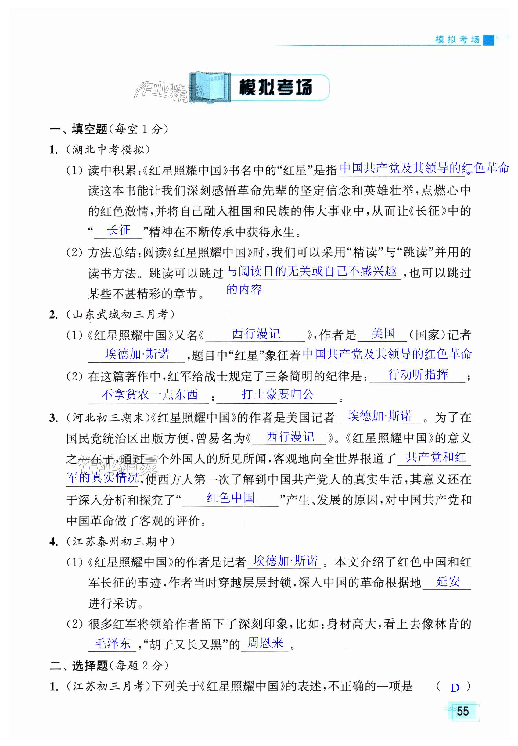 注:目前有些书本章节名称可能整理的还不是很完善,但都是按照顺序排列的,请同学们按照顺序仔细查找。练习册 2024年问读经典名著导读导练八年级上册人教版 答案主要是用来给同学们做完题方便对答案用的,请勿直接抄袭。