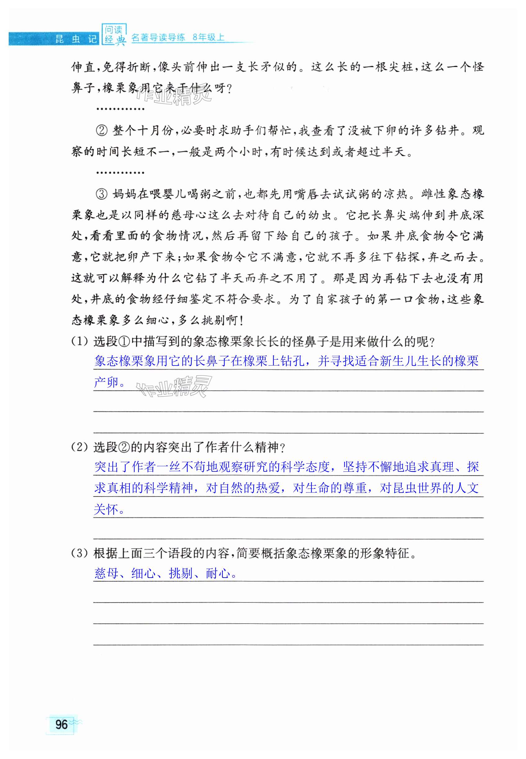 注:目前有些书本章节名称可能整理的还不是很完善,但都是按照顺序排列的,请同学们按照顺序仔细查找。练习册 2024年问读经典名著导读导练八年级上册人教版 答案主要是用来给同学们做完题方便对答案用的,请勿直接抄袭。