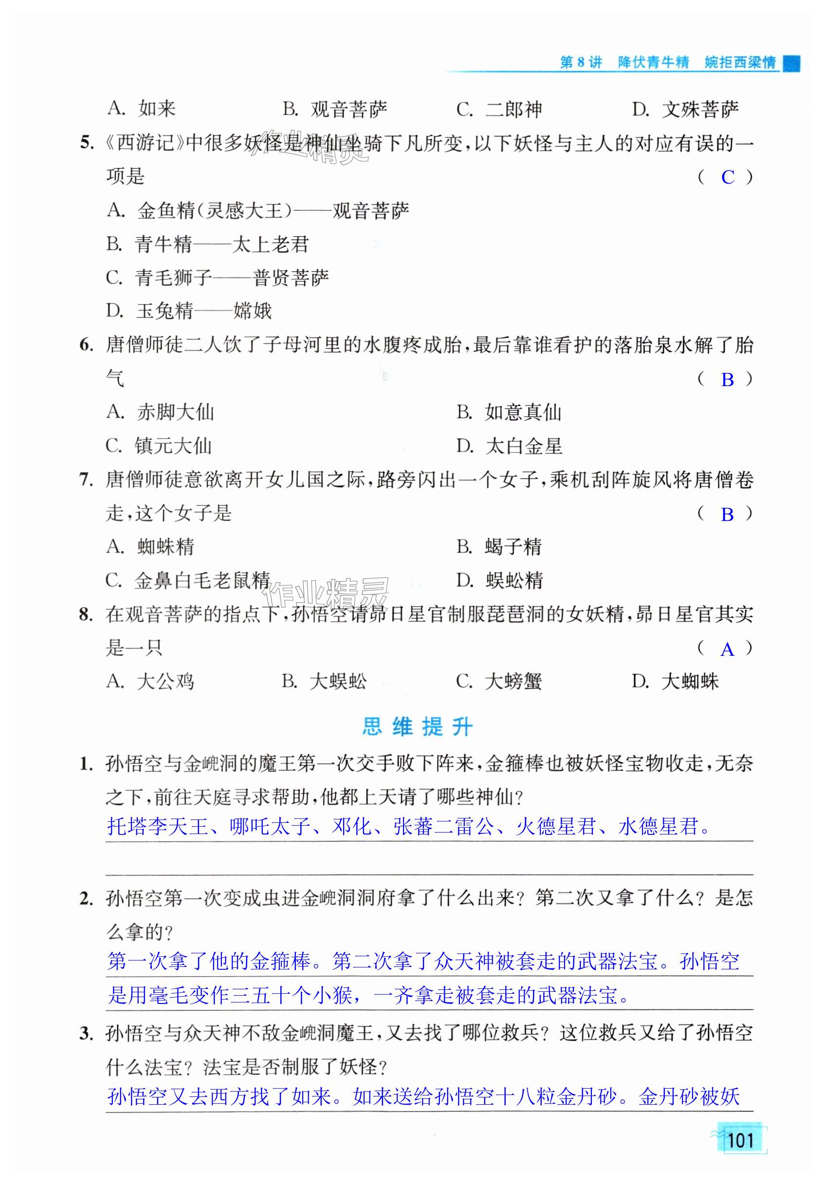 注:目前有些书本章节名称可能整理的还不是很完善,但都是按照顺序排列的,请同学们按照顺序仔细查找。练习册 2024年问读经典名著导读导练七年级上册人教版 答案主要是用来给同学们做完题方便对答案用的,请勿直接抄袭。
