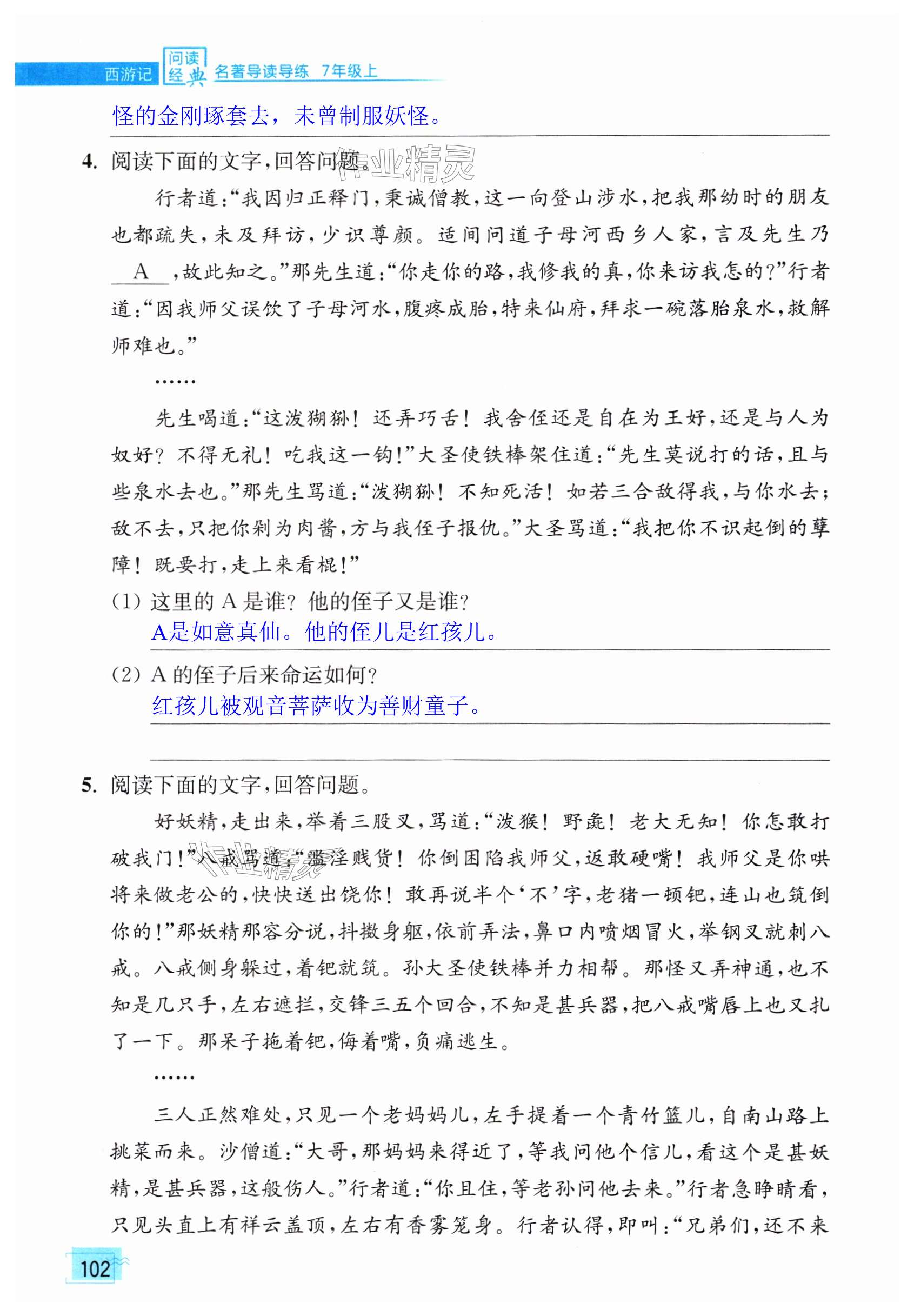 注:目前有些书本章节名称可能整理的还不是很完善,但都是按照顺序排列的,请同学们按照顺序仔细查找。练习册 2024年问读经典名著导读导练七年级上册人教版 答案主要是用来给同学们做完题方便对答案用的,请勿直接抄袭。