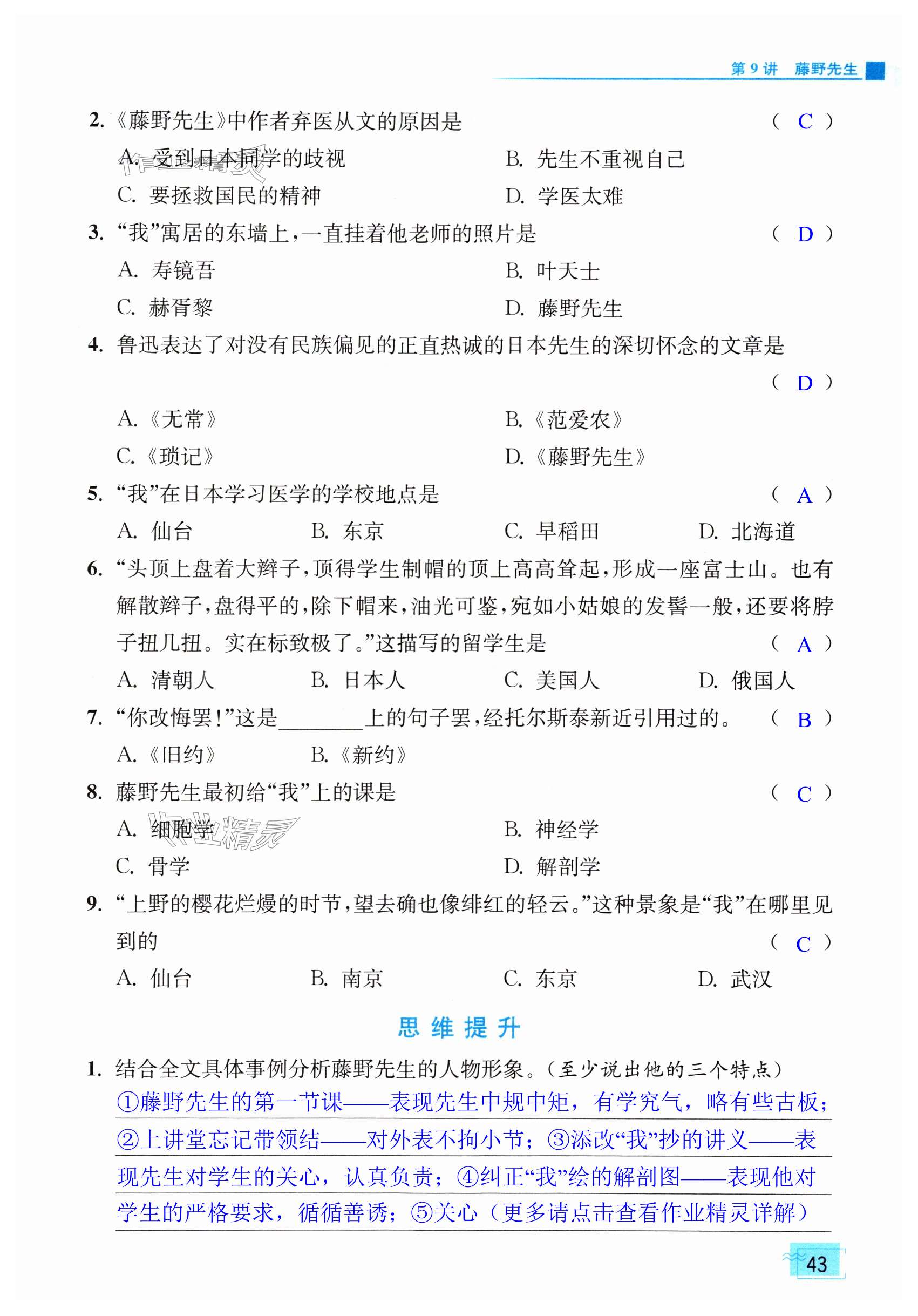 注:目前有些书本章节名称可能整理的还不是很完善,但都是按照顺序排列的,请同学们按照顺序仔细查找。练习册 2024年问读经典名著导读导练七年级上册人教版 答案主要是用来给同学们做完题方便对答案用的,请勿直接抄袭。