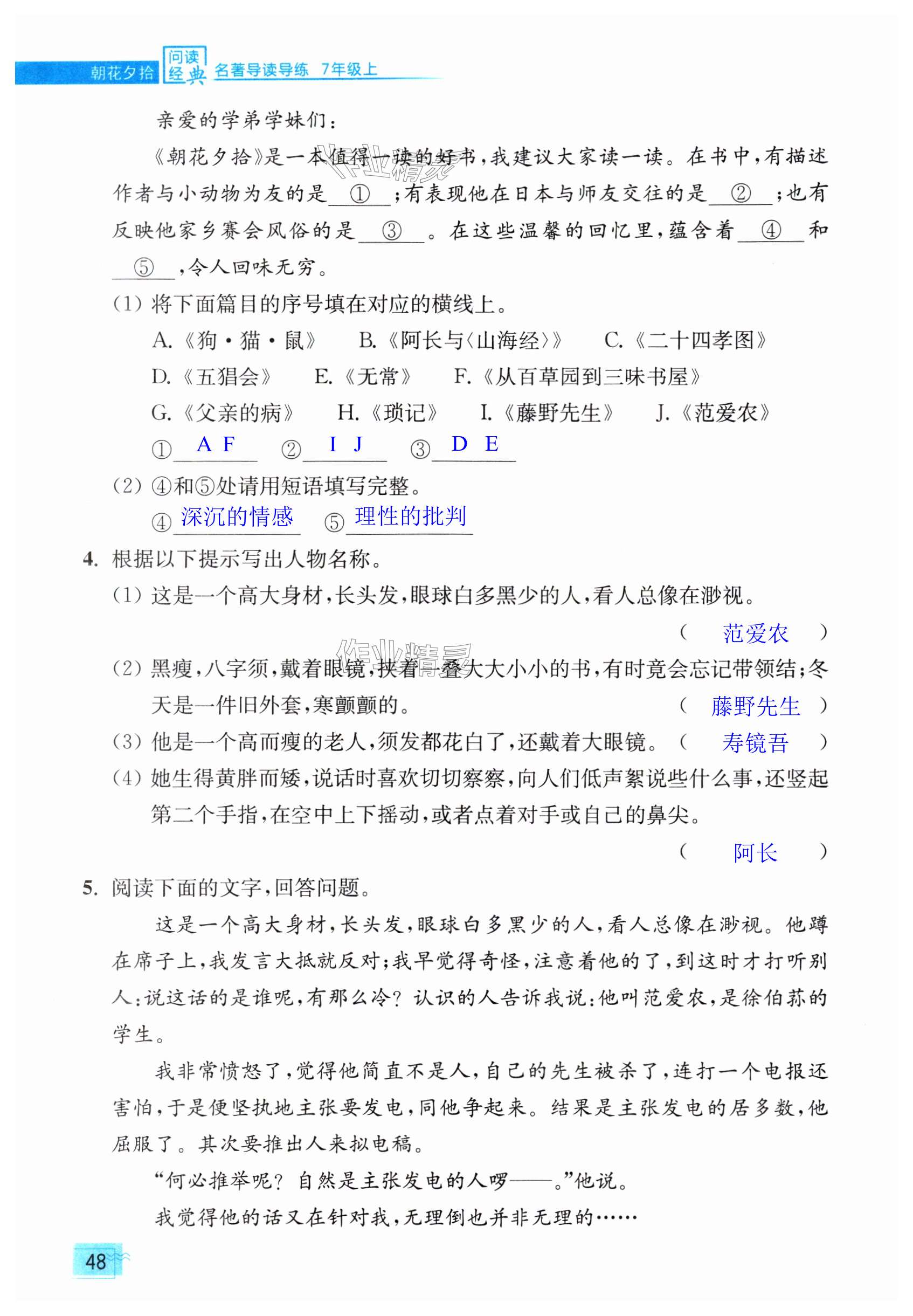 注:目前有些书本章节名称可能整理的还不是很完善,但都是按照顺序排列的,请同学们按照顺序仔细查找。练习册 2024年问读经典名著导读导练七年级上册人教版 答案主要是用来给同学们做完题方便对答案用的,请勿直接抄袭。
