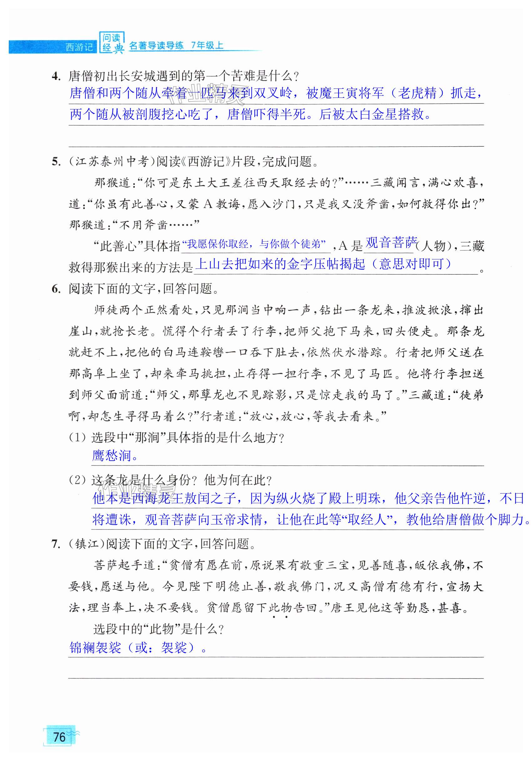 注:目前有些书本章节名称可能整理的还不是很完善,但都是按照顺序排列的,请同学们按照顺序仔细查找。练习册 2024年问读经典名著导读导练七年级上册人教版 答案主要是用来给同学们做完题方便对答案用的,请勿直接抄袭。