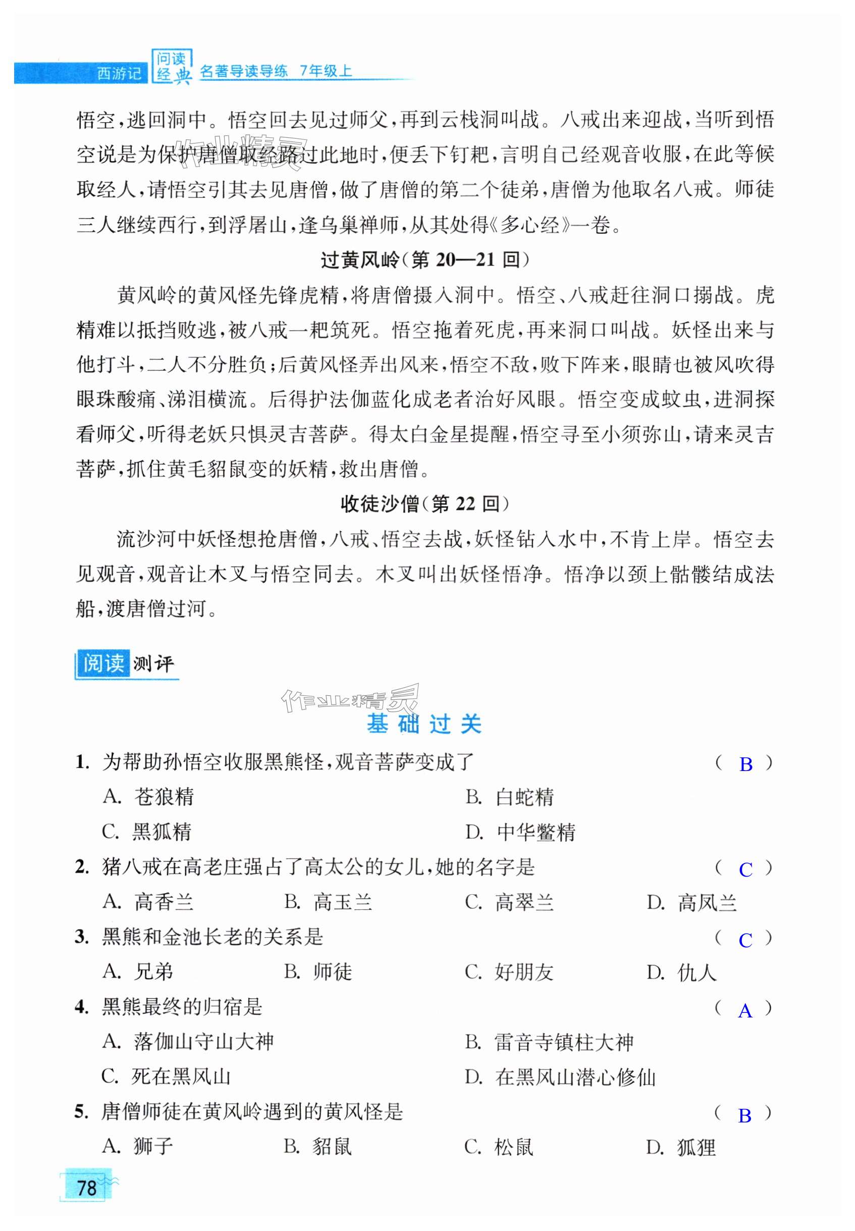 注:目前有些书本章节名称可能整理的还不是很完善,但都是按照顺序排列的,请同学们按照顺序仔细查找。练习册 2024年问读经典名著导读导练七年级上册人教版 答案主要是用来给同学们做完题方便对答案用的,请勿直接抄袭。