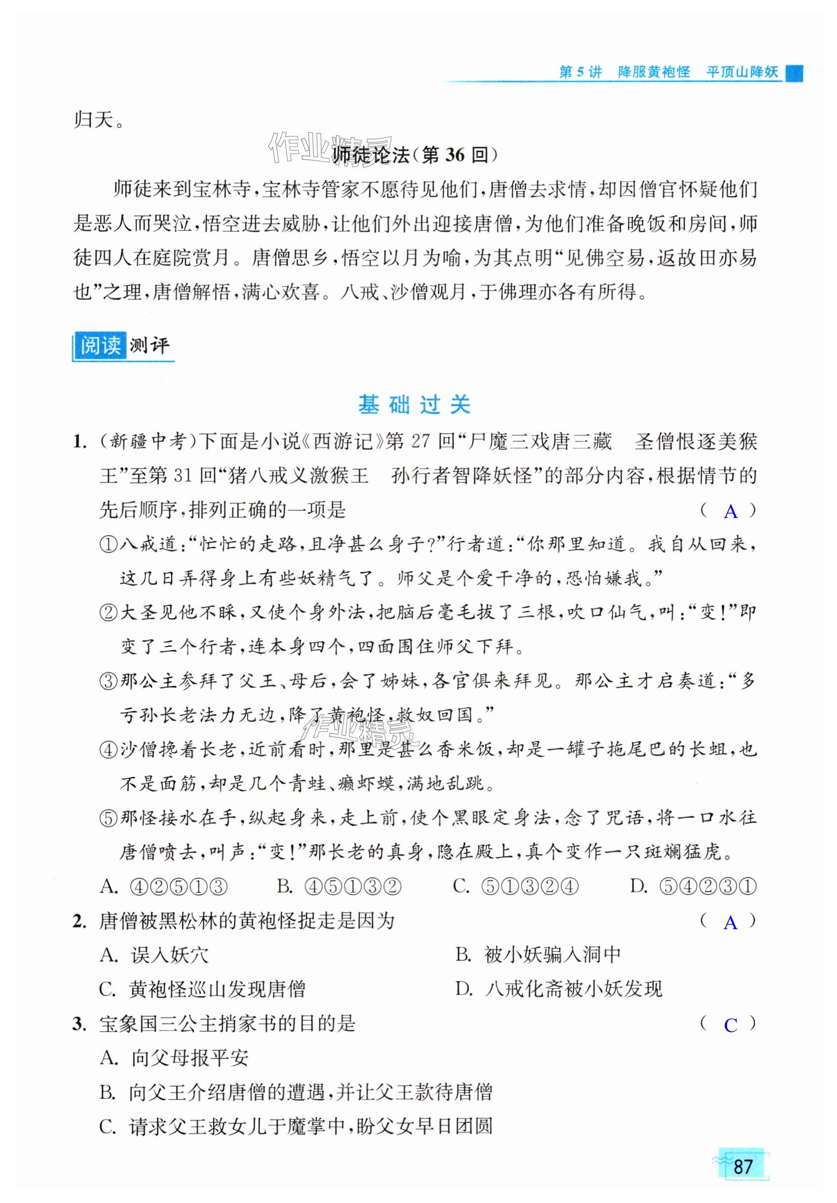 注:目前有些书本章节名称可能整理的还不是很完善,但都是按照顺序排列的,请同学们按照顺序仔细查找。练习册 2024年问读经典名著导读导练七年级上册人教版 答案主要是用来给同学们做完题方便对答案用的,请勿直接抄袭。