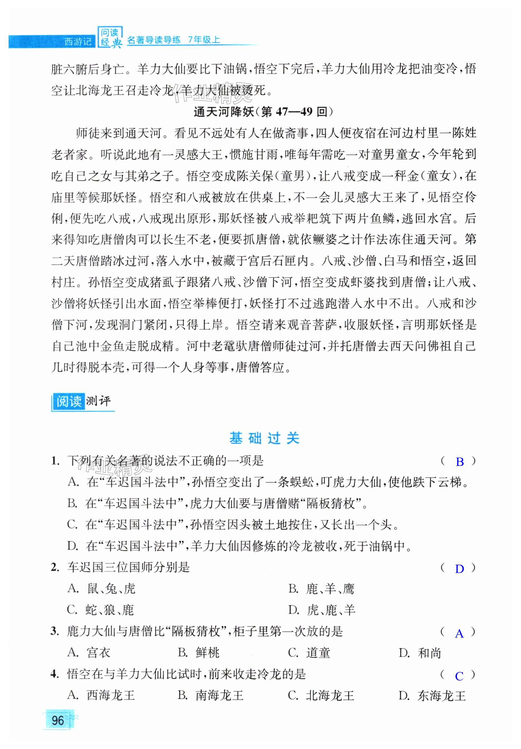 注:目前有些书本章节名称可能整理的还不是很完善,但都是按照顺序排列的,请同学们按照顺序仔细查找。练习册 2024年问读经典名著导读导练七年级上册人教版 答案主要是用来给同学们做完题方便对答案用的,请勿直接抄袭。