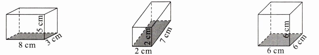 3. 下面的长方体都是用棱长1厘米的小正方体摆成的,把它们的长、宽、高分别填在括号里。