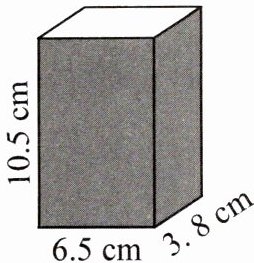 2. 一个长方体饮料盒(如图),它的长、宽、高分别是6.5厘米、3.8厘米、10.5厘米。如果在它的侧面贴一圈商标纸,商标纸的面积至少是多少平方厘米?