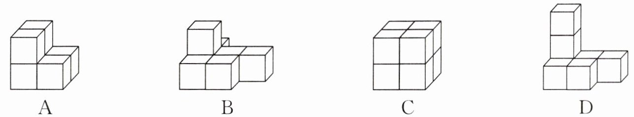 (3)下面四个物体都是用同样大的小正方体摆成的。这些物体中,( )的体积最大,( )的体积最小,( )和( )的体积一样大。