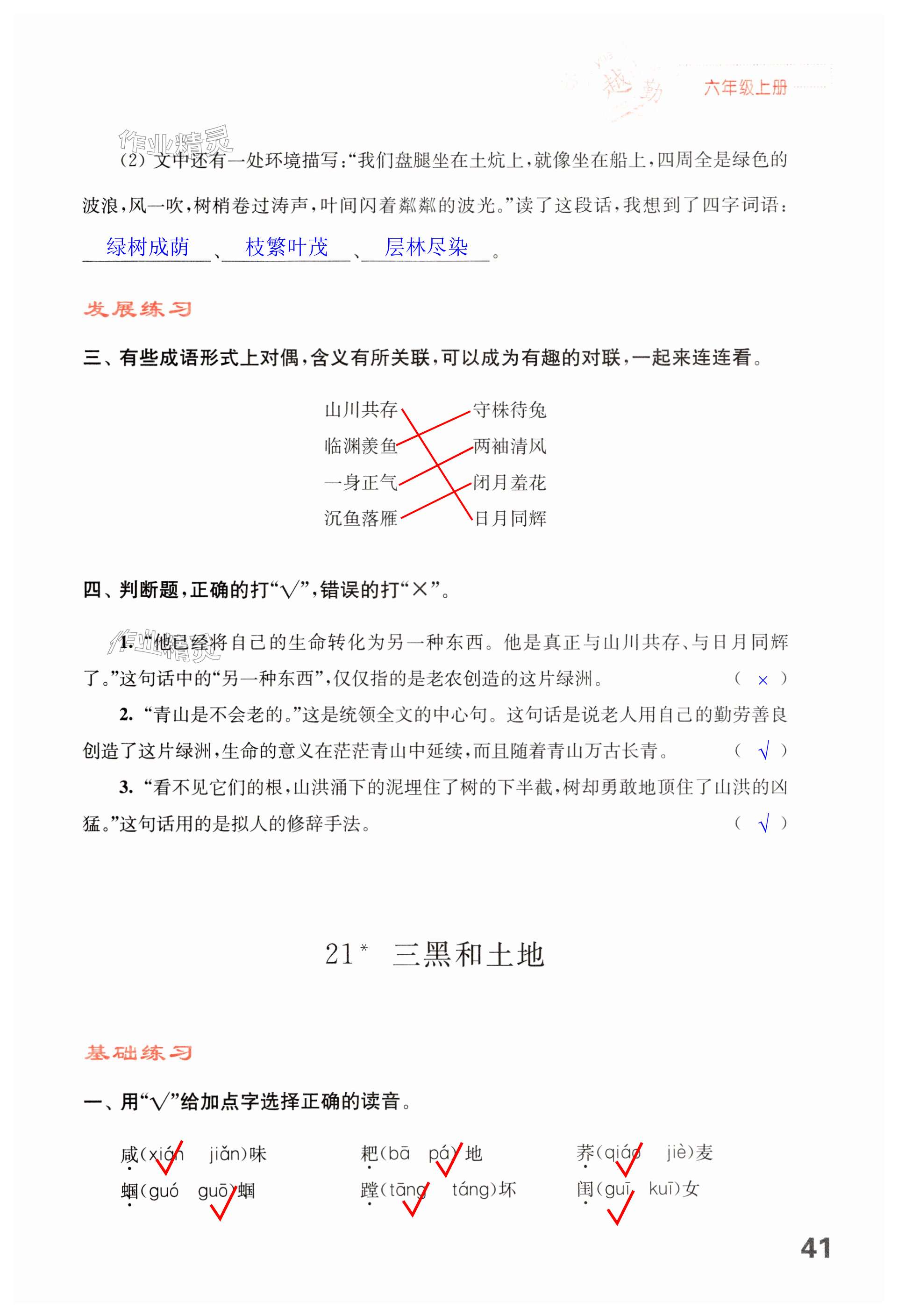 注:目前有些书本章节名称可能整理的还不是很完善,但都是按照顺序排列的,请同学们按照顺序仔细查找。练习册 2024年练习与测试六年级语文上册人教版福建专版 答案主要是用来给同学们做完题方便对答案用的,请勿直接抄袭。