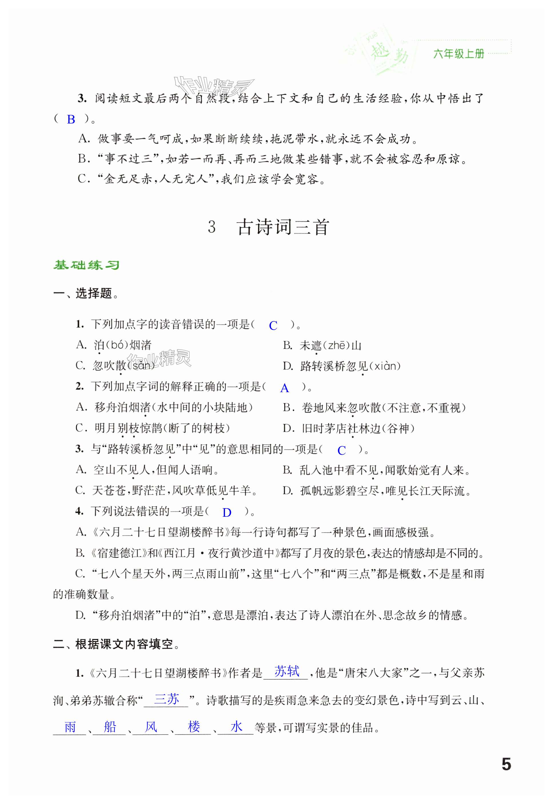 注:目前有些书本章节名称可能整理的还不是很完善,但都是按照顺序排列的,请同学们按照顺序仔细查找。练习册 2024年练习与测试六年级语文上册人教版福建专版 答案主要是用来给同学们做完题方便对答案用的,请勿直接抄袭。