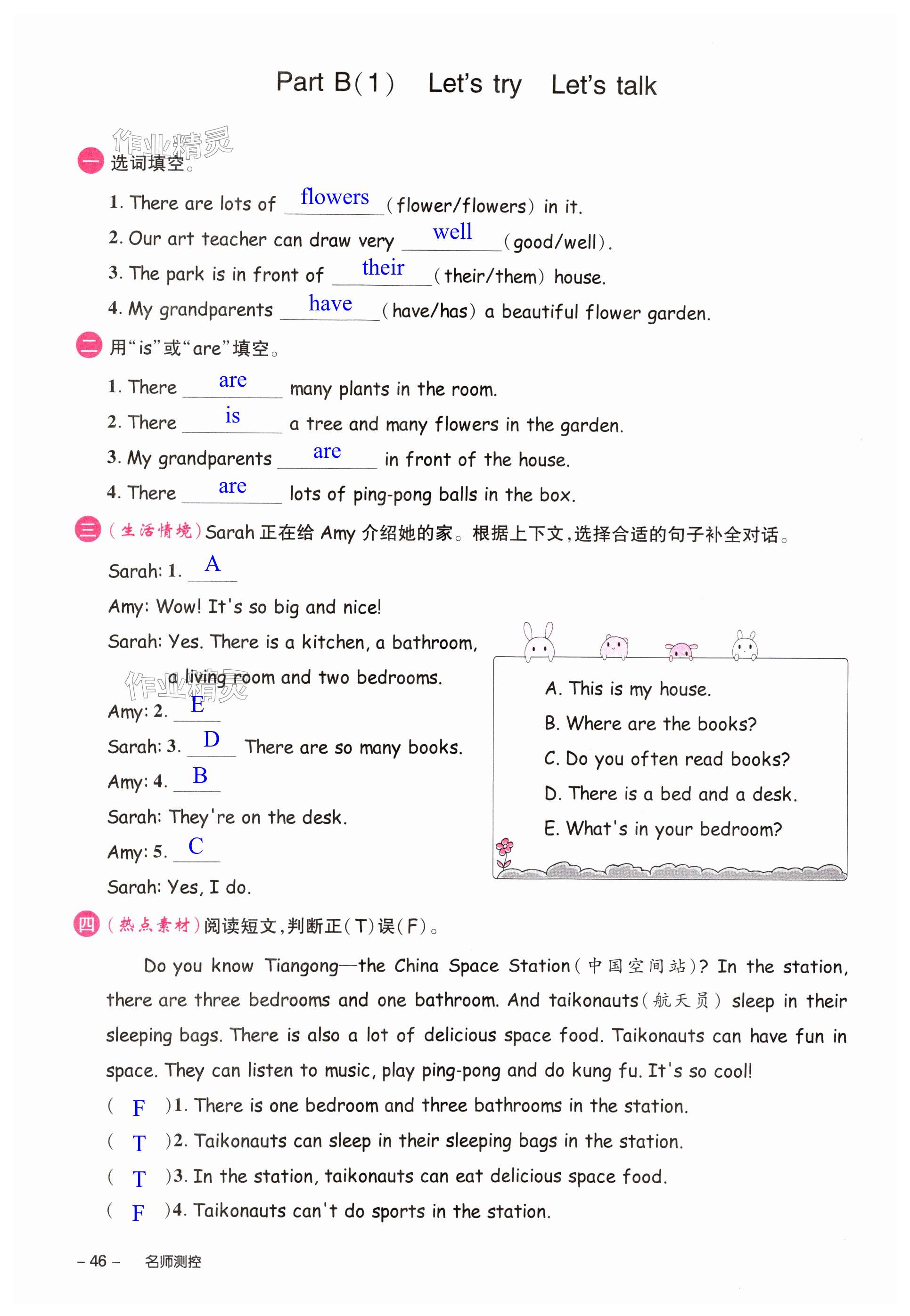 注:目前有些书本章节名称可能整理的还不是很完善,但都是按照顺序排列的,请同学们按照顺序仔细查找。练习册 2024年名师测控五年级英语上册人教版浙江专版 答案主要是用来给同学们做完题方便对答案用的,请勿直接抄袭。