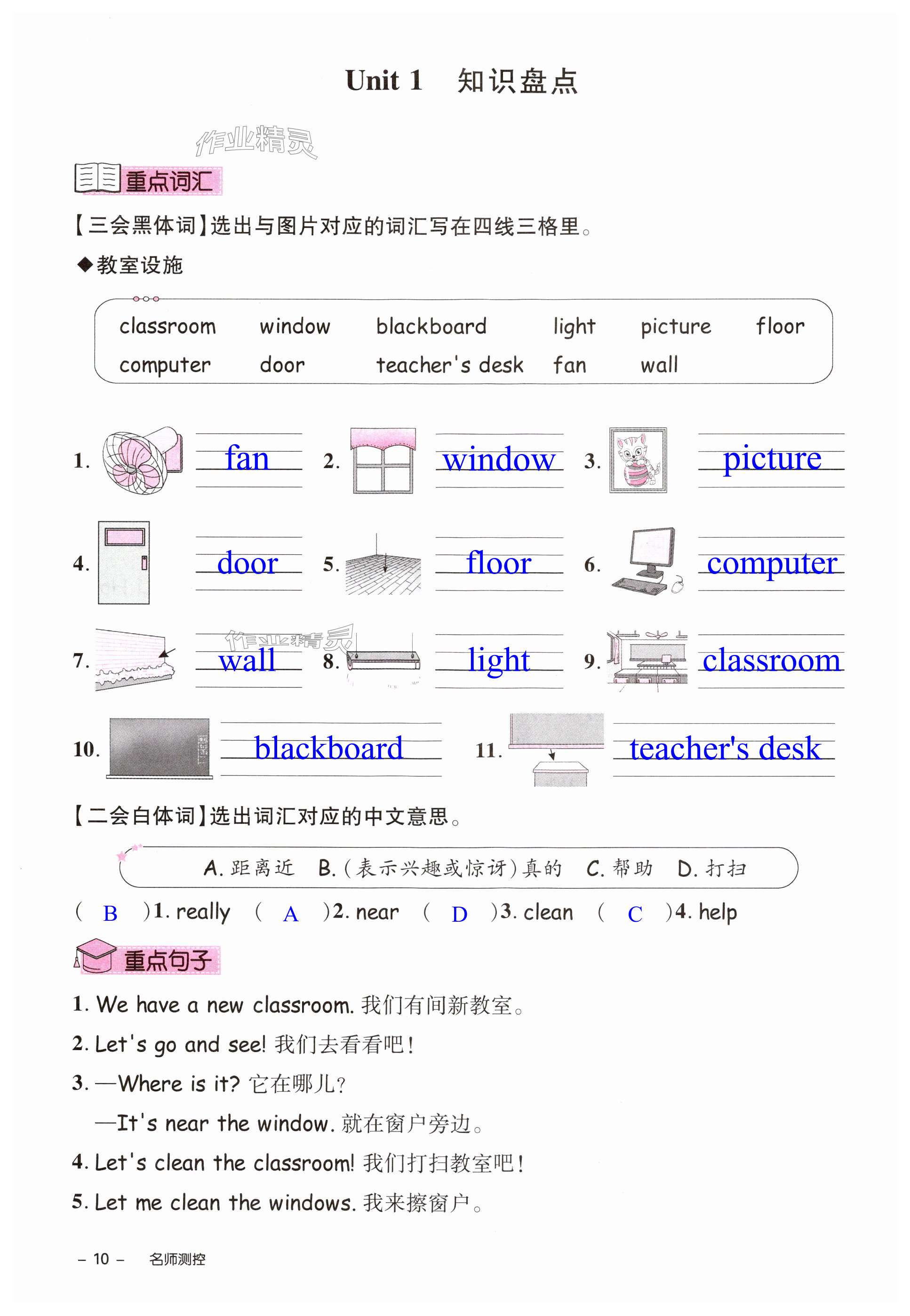 注:目前有些书本章节名称可能整理的还不是很完善,但都是按照顺序排列的,请同学们按照顺序仔细查找。练习册 2024年名师测控四年级英语上册人教版浙江专版 答案主要是用来给同学们做完题方便对答案用的,请勿直接抄袭。