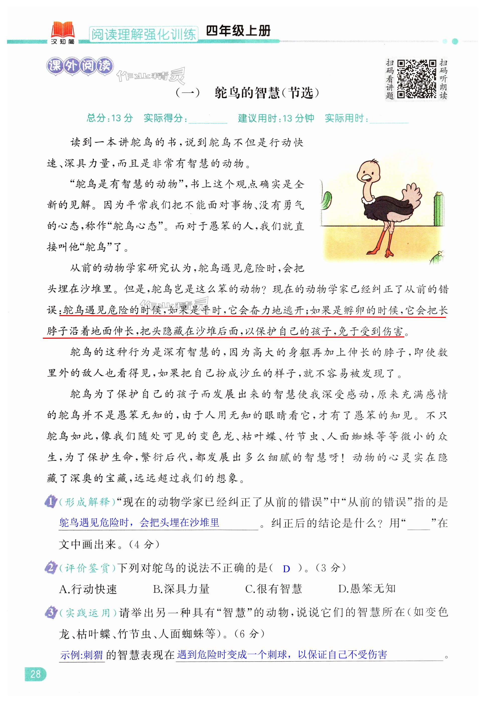 注:目前有些书本章节名称可能整理的还不是很完善,但都是按照顺序排列的,请同学们按照顺序仔细查找。练习册 2024年小学语文同步阅读理解强化训练四年级上册人教版 答案主要是用来给同学们做完题方便对答案用的,请勿直接抄袭。