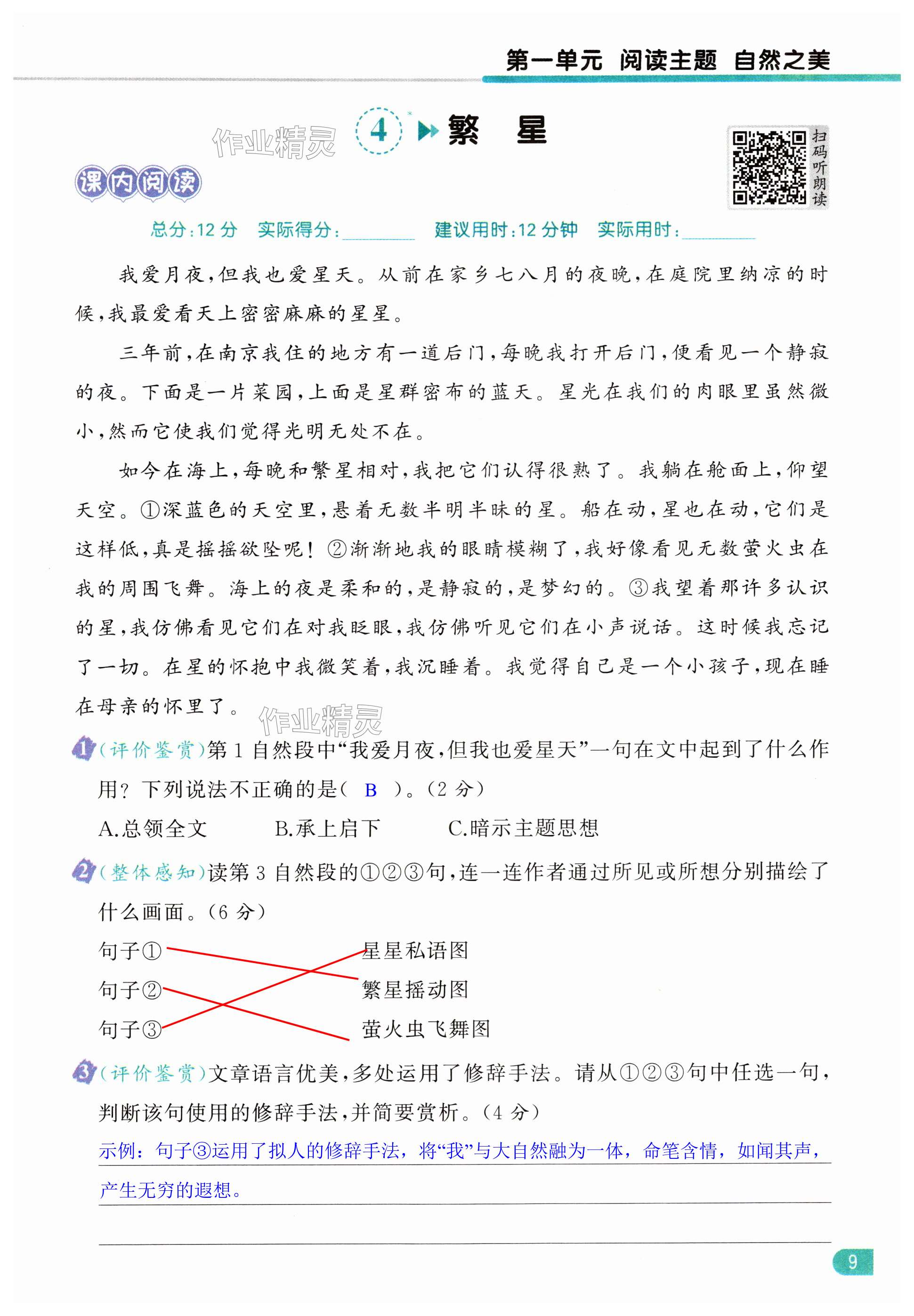 注:目前有些书本章节名称可能整理的还不是很完善,但都是按照顺序排列的,请同学们按照顺序仔细查找。练习册 2024年小学语文同步阅读理解强化训练四年级上册人教版 答案主要是用来给同学们做完题方便对答案用的,请勿直接抄袭。