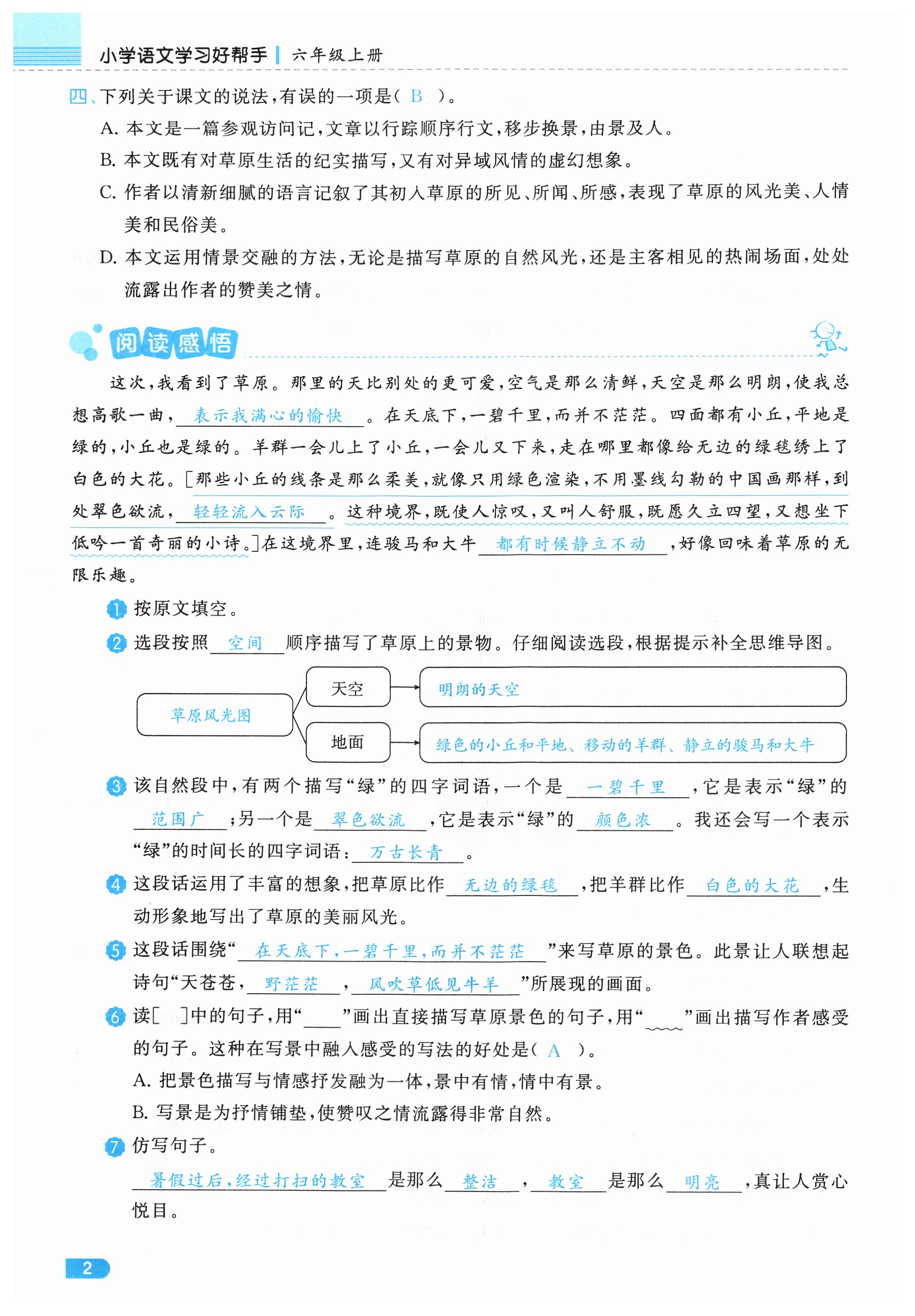 注:目前有些书本章节名称可能整理的还不是很完善,但都是按照顺序排列的,请同学们按照顺序仔细查找。练习册 2024年小学学习好帮手六年级语文上册人教版 答案主要是用来给同学们做完题方便对答案用的,请勿直接抄袭。