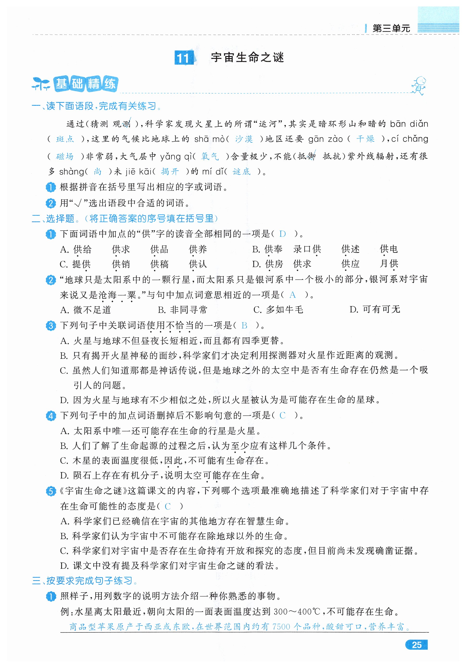 相关练习册答案