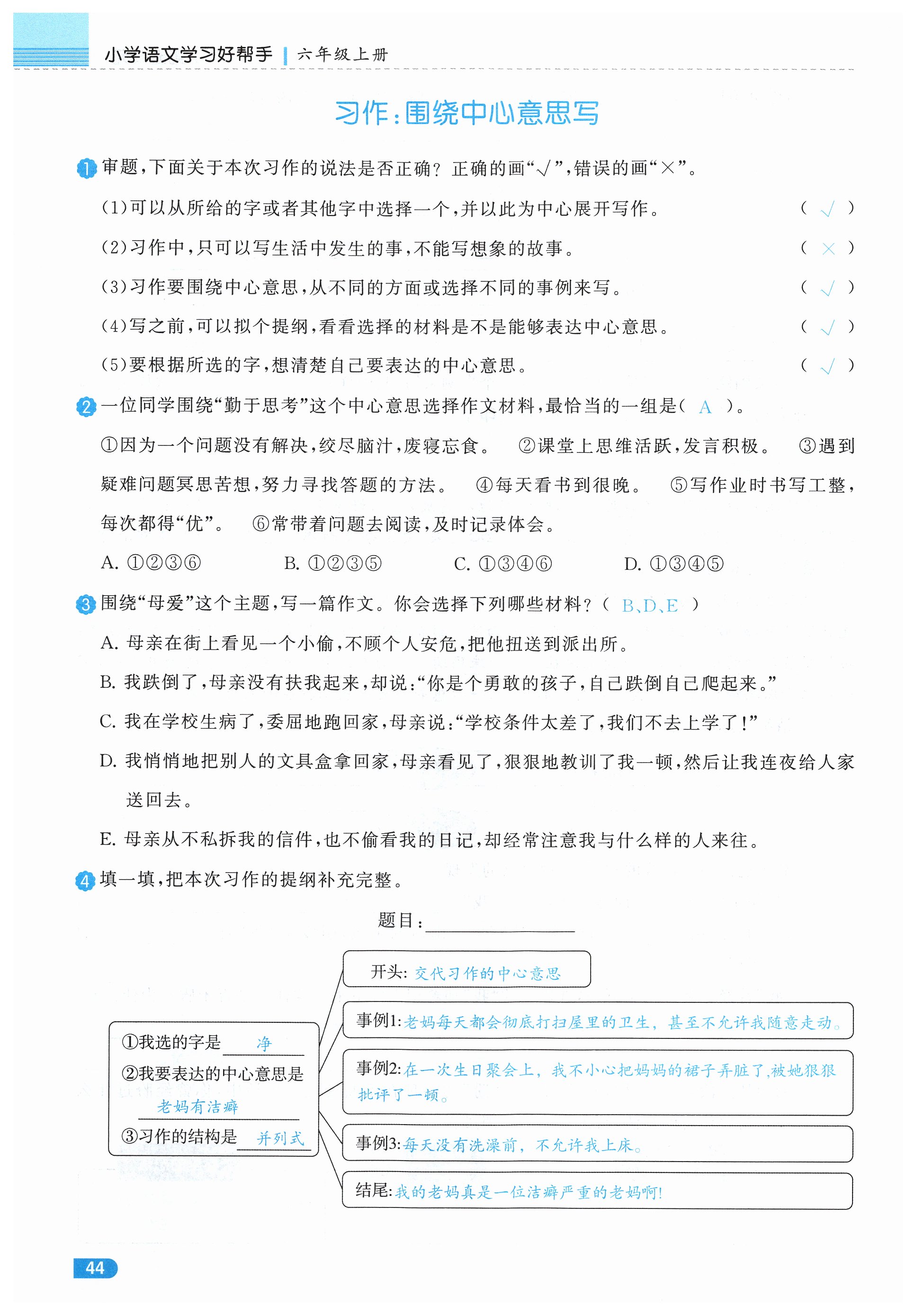注:目前有些书本章节名称可能整理的还不是很完善,但都是按照顺序排列的,请同学们按照顺序仔细查找。练习册 2024年小学学习好帮手六年级语文上册人教版 答案主要是用来给同学们做完题方便对答案用的,请勿直接抄袭。