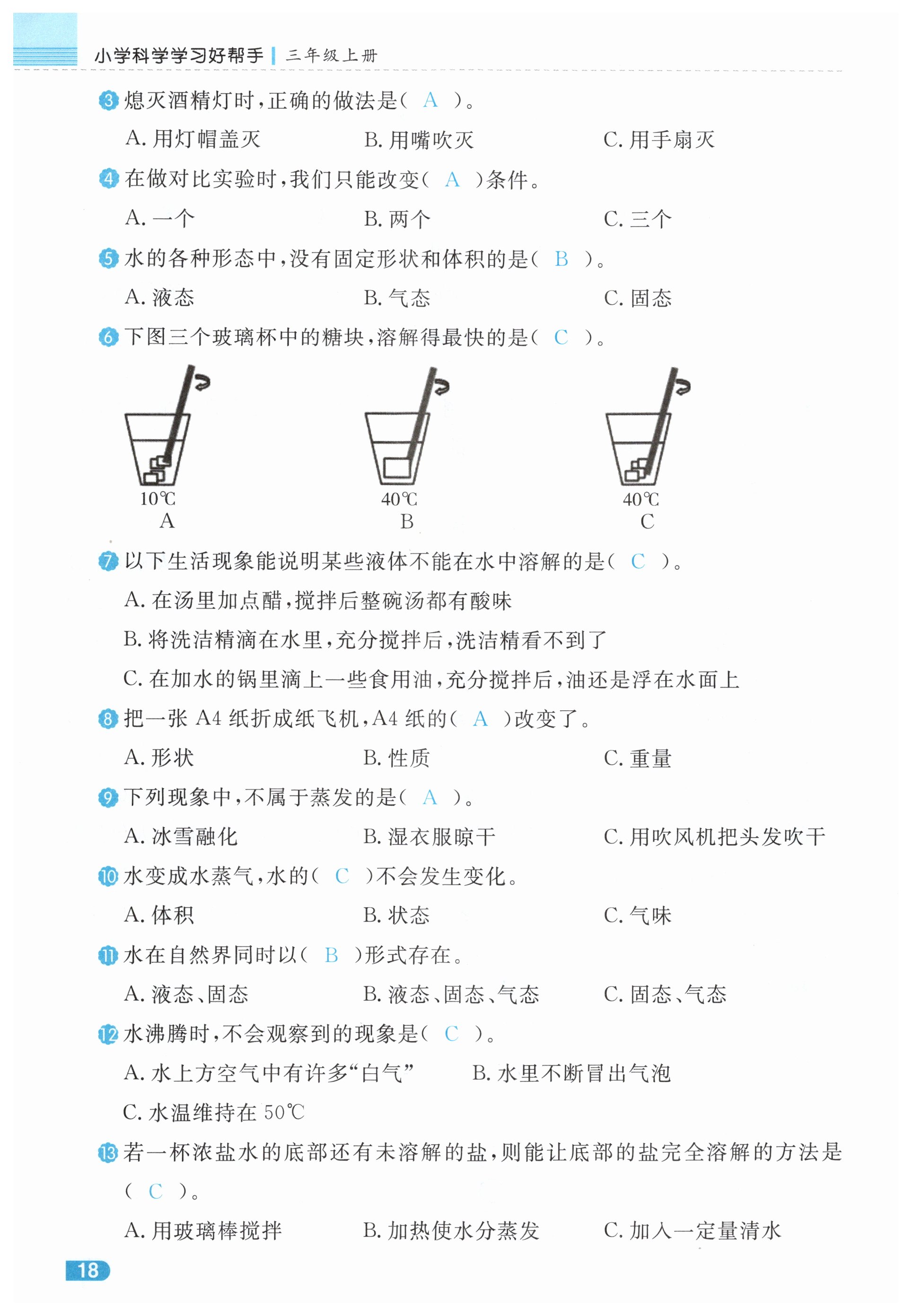 注:目前有些书本章节名称可能整理的还不是很完善,但都是按照顺序排列的,请同学们按照顺序仔细查找。练习册 2024年小学学习好帮手三年级科学上册教科版 答案主要是用来给同学们做完题方便对答案用的,请勿直接抄袭。