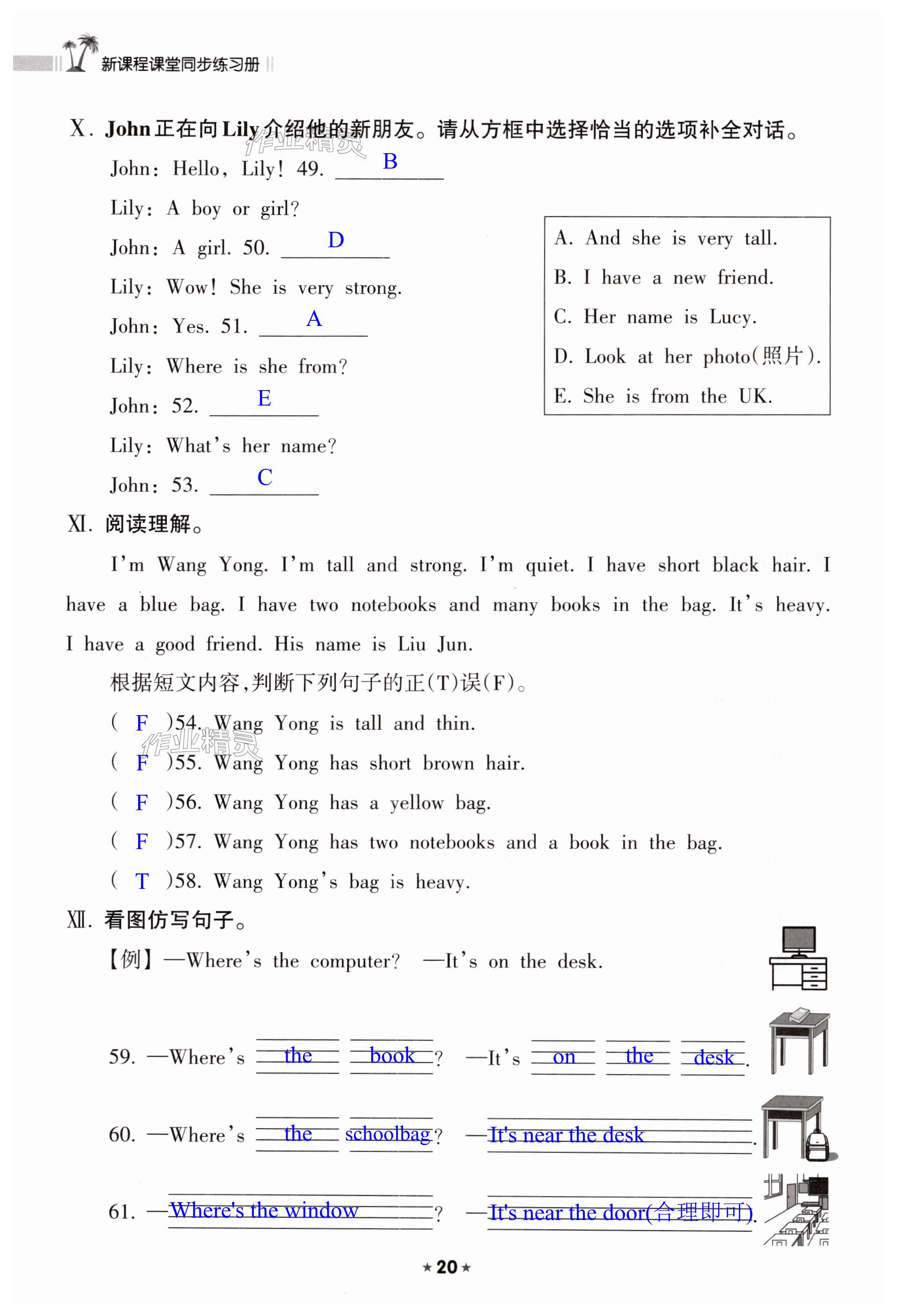 注:目前有些书本章节名称可能整理的还不是很完善,但都是按照顺序排列的,请同学们按照顺序仔细查找。练习册 2024年新课程课堂同步练习册四年级英语上册人教版 答案主要是用来给同学们做完题方便对答案用的,请勿直接抄袭。