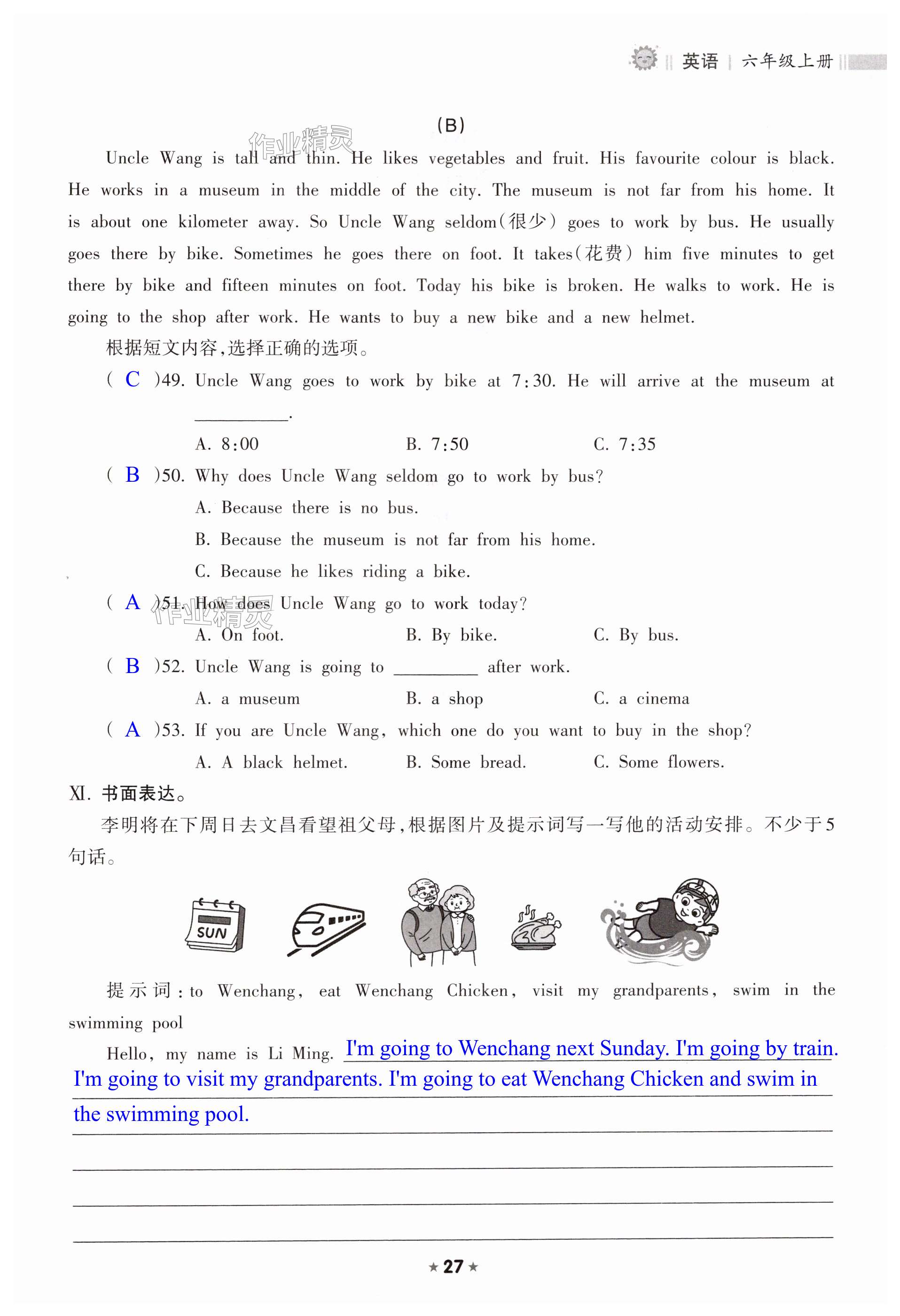 注:目前有些书本章节名称可能整理的还不是很完善,但都是按照顺序排列的,请同学们按照顺序仔细查找。练习册 2024年新课程课堂同步练习册六年级英语上册人教版 答案主要是用来给同学们做完题方便对答案用的,请勿直接抄袭。