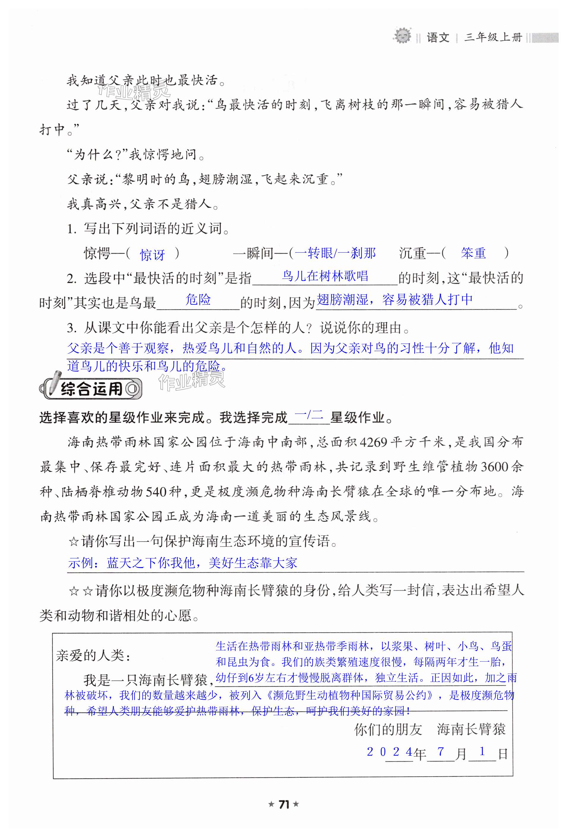 注:目前有些书本章节名称可能整理的还不是很完善,但都是按照顺序排列的,请同学们按照顺序仔细查找。练习册 2024年新课程课堂同步练习册三年级语文上册人教版 答案主要是用来给同学们做完题方便对答案用的,请勿直接抄袭。