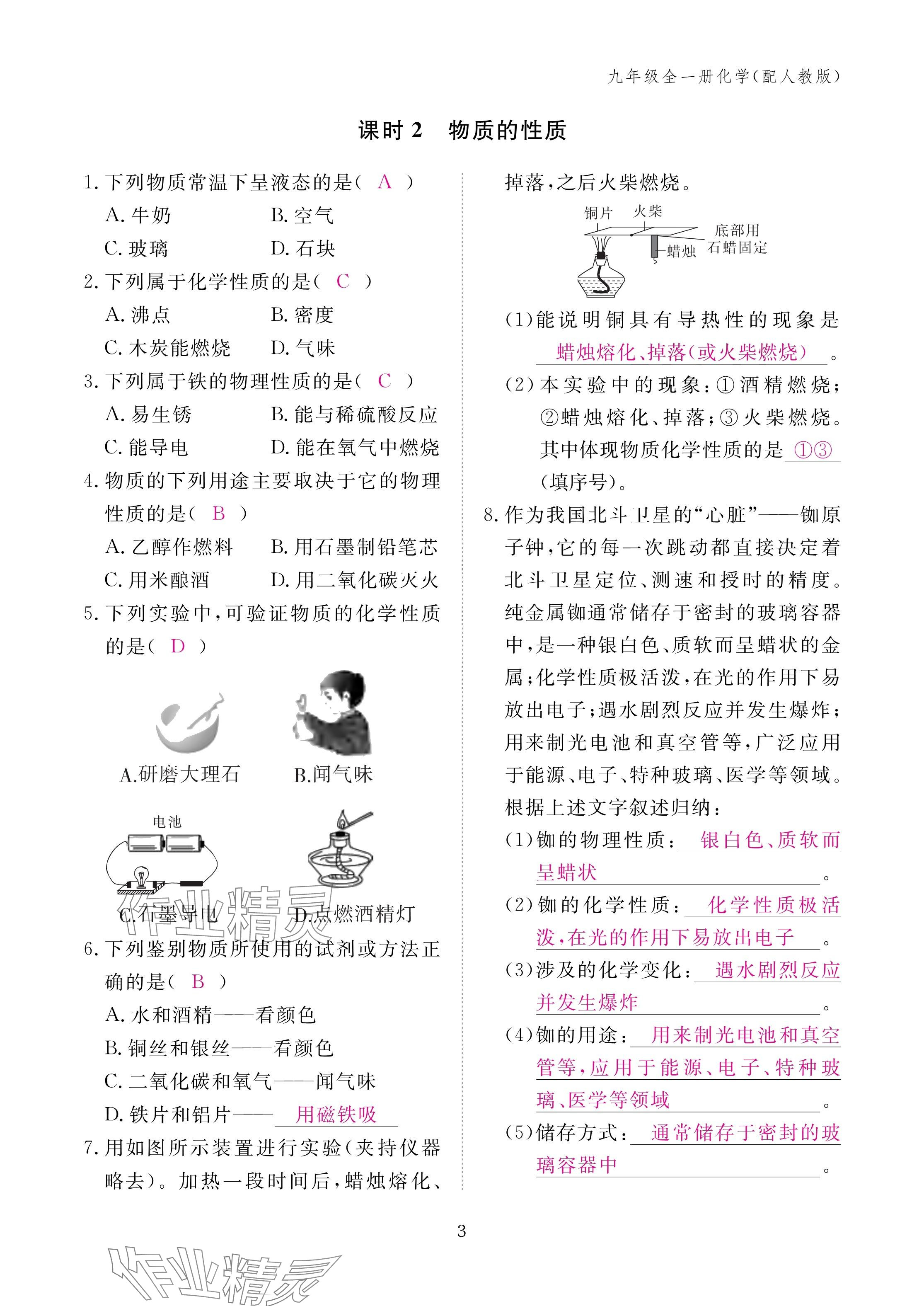 注:目前有些书本章节名称可能整理的还不是很完善,但都是按照顺序排列的,请同学们按照顺序仔细查找。练习册 2024年作业本江西教育出版社九年级化学全一册人教版 答案主要是用来给同学们做完题方便对答案用的,请勿直接抄袭。