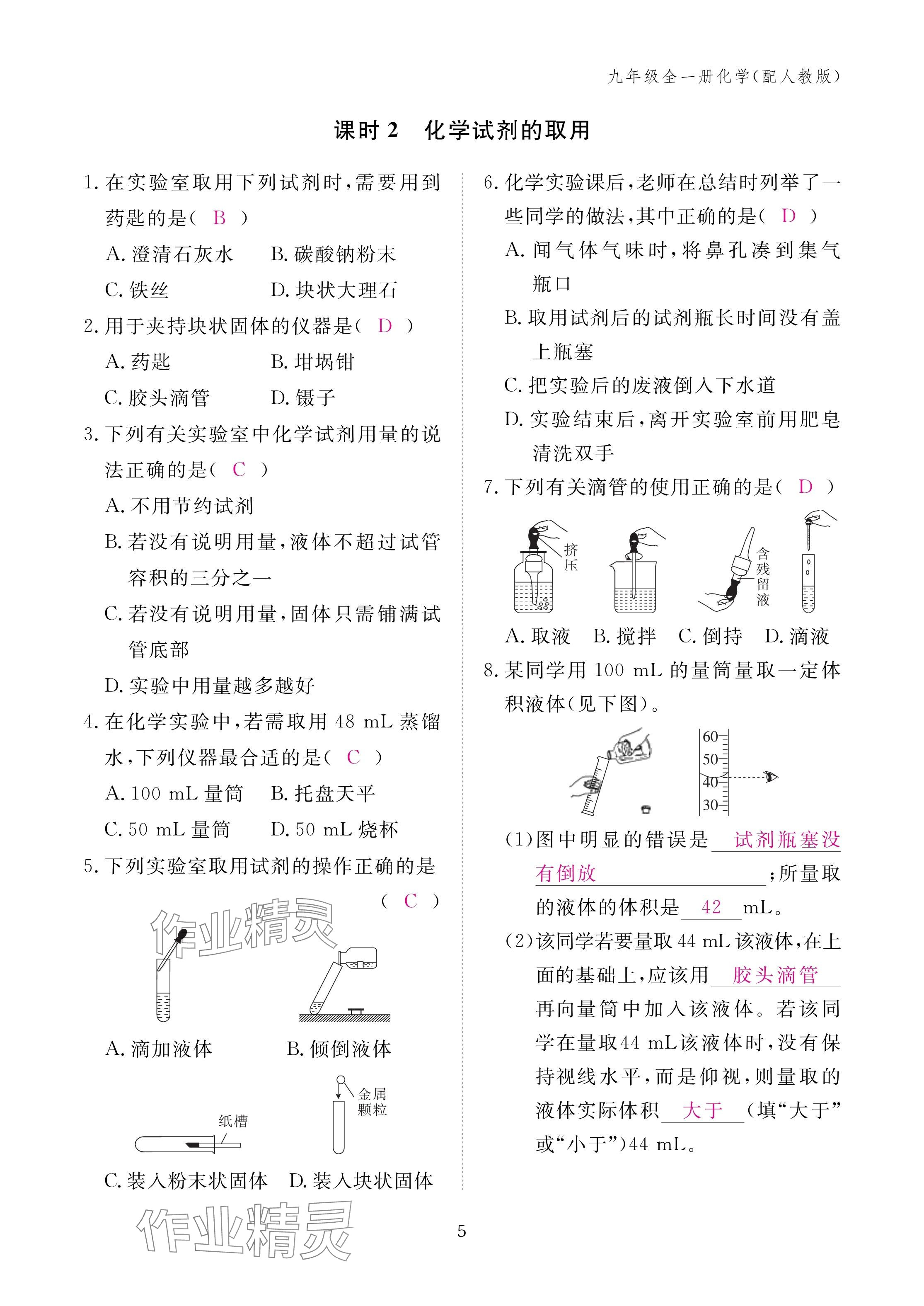 注:目前有些书本章节名称可能整理的还不是很完善,但都是按照顺序排列的,请同学们按照顺序仔细查找。练习册 2024年作业本江西教育出版社九年级化学全一册人教版 答案主要是用来给同学们做完题方便对答案用的,请勿直接抄袭。