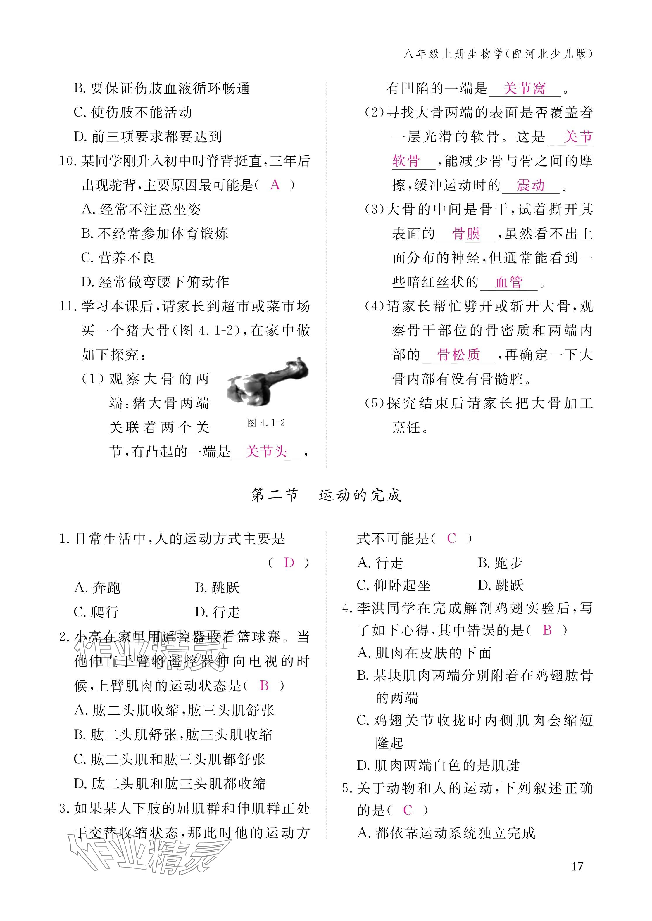 注:目前有些书本章节名称可能整理的还不是很完善,但都是按照顺序排列的,请同学们按照顺序仔细查找。练习册 2024年作业本江西教育出版社八年级生物上册冀少版 答案主要是用来给同学们做完题方便对答案用的,请勿直接抄袭。