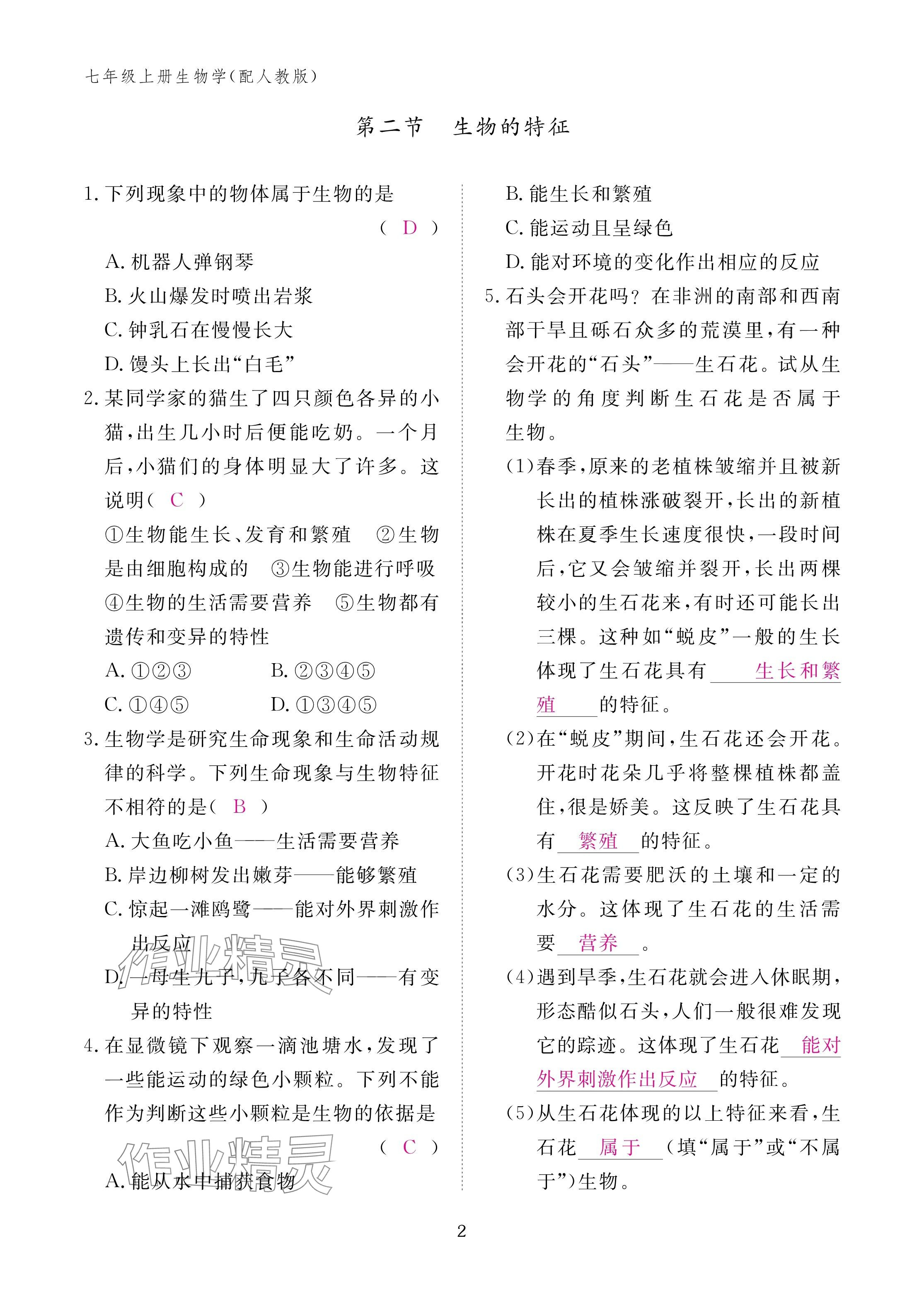 注:目前有些书本章节名称可能整理的还不是很完善,但都是按照顺序排列的,请同学们按照顺序仔细查找。练习册 2024年作业本江西教育出版社七年级生物上册人教版 答案主要是用来给同学们做完题方便对答案用的,请勿直接抄袭。