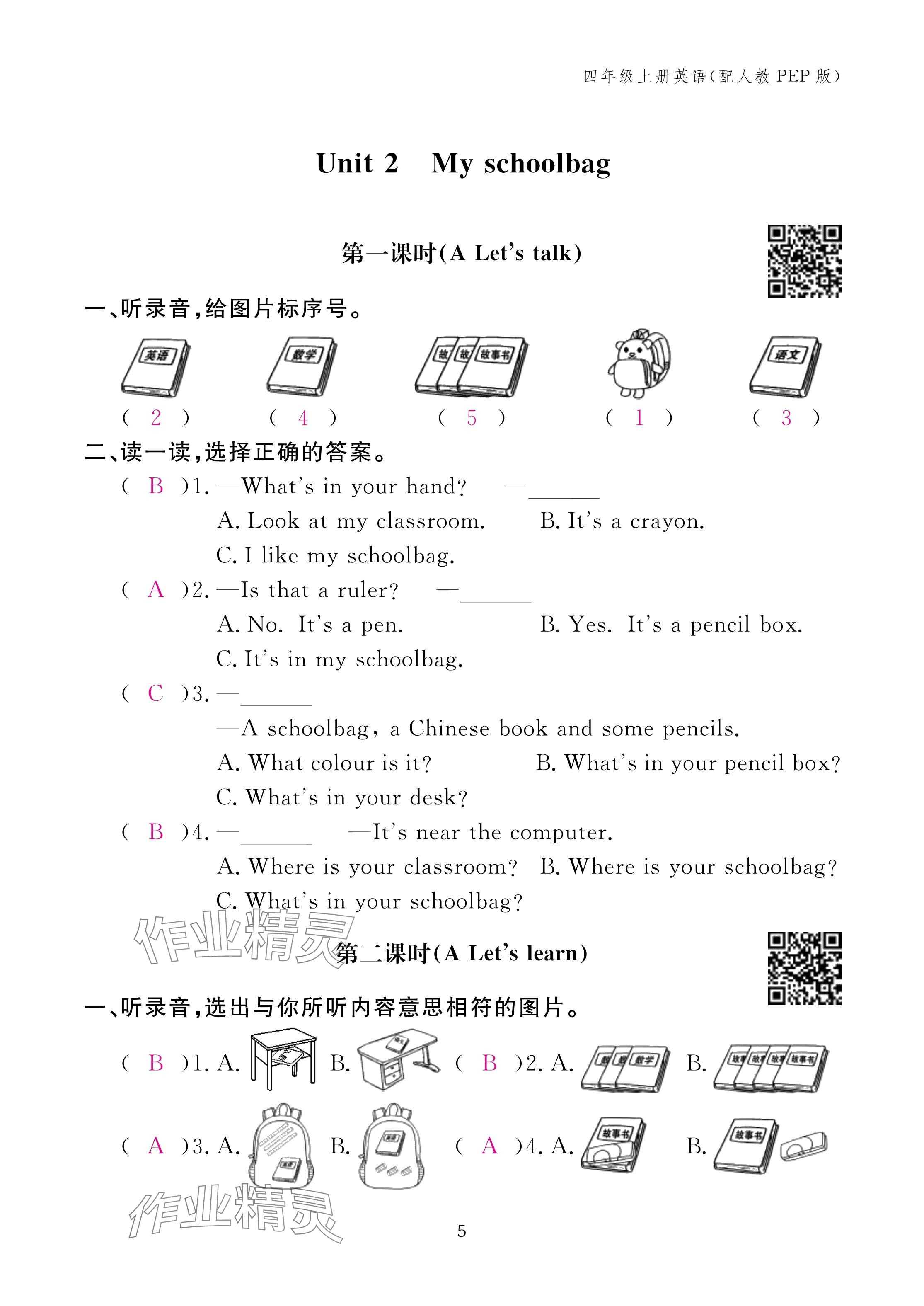 注:目前有些书本章节名称可能整理的还不是很完善,但都是按照顺序排列的,请同学们按照顺序仔细查找。练习册 2024年作业本江西教育出版社四年级英语上册人教版 答案主要是用来给同学们做完题方便对答案用的,请勿直接抄袭。