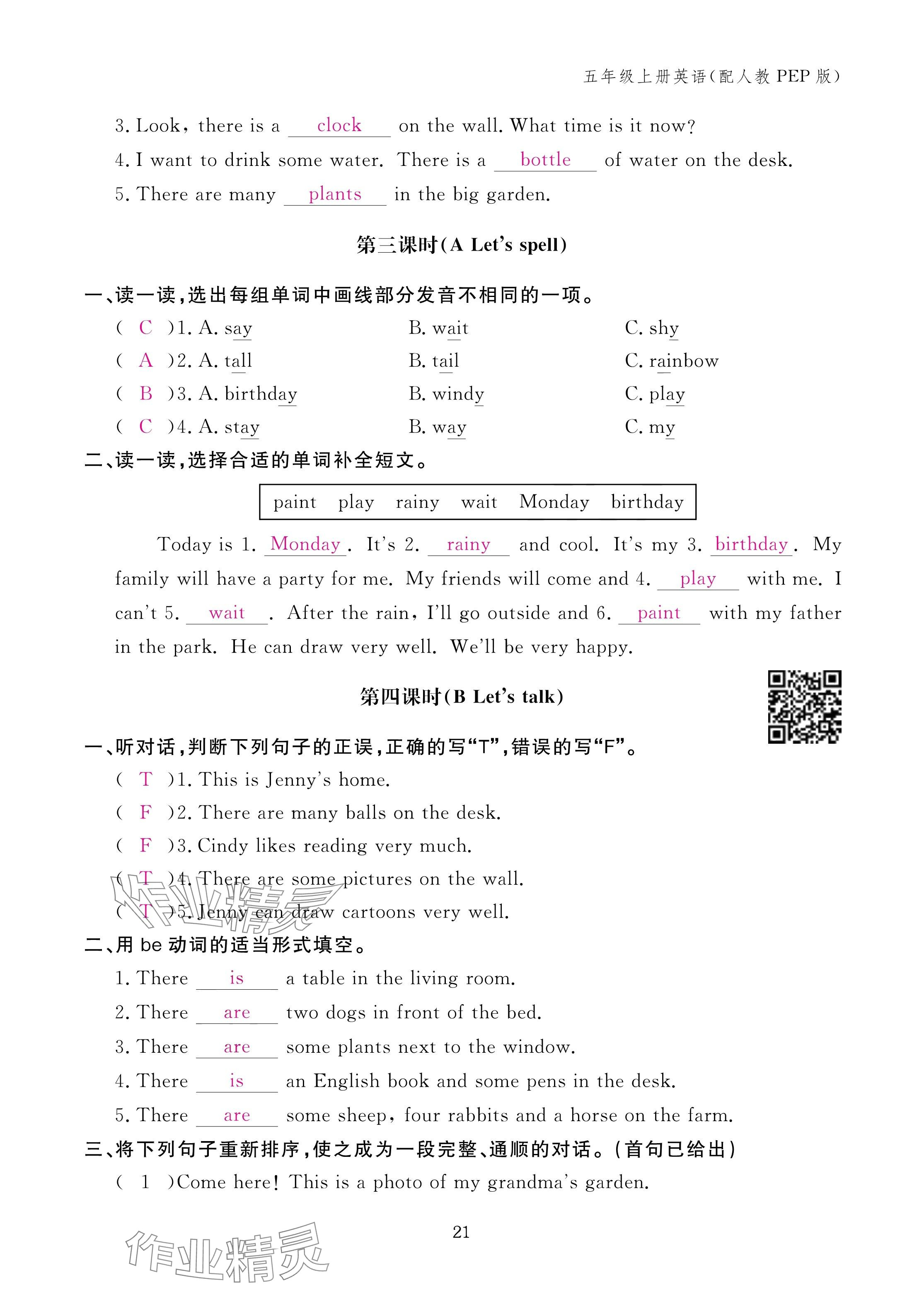 注:目前有些书本章节名称可能整理的还不是很完善,但都是按照顺序排列的,请同学们按照顺序仔细查找。练习册 2024年作业本江西教育出版社五年级英语上册人教版 答案主要是用来给同学们做完题方便对答案用的,请勿直接抄袭。