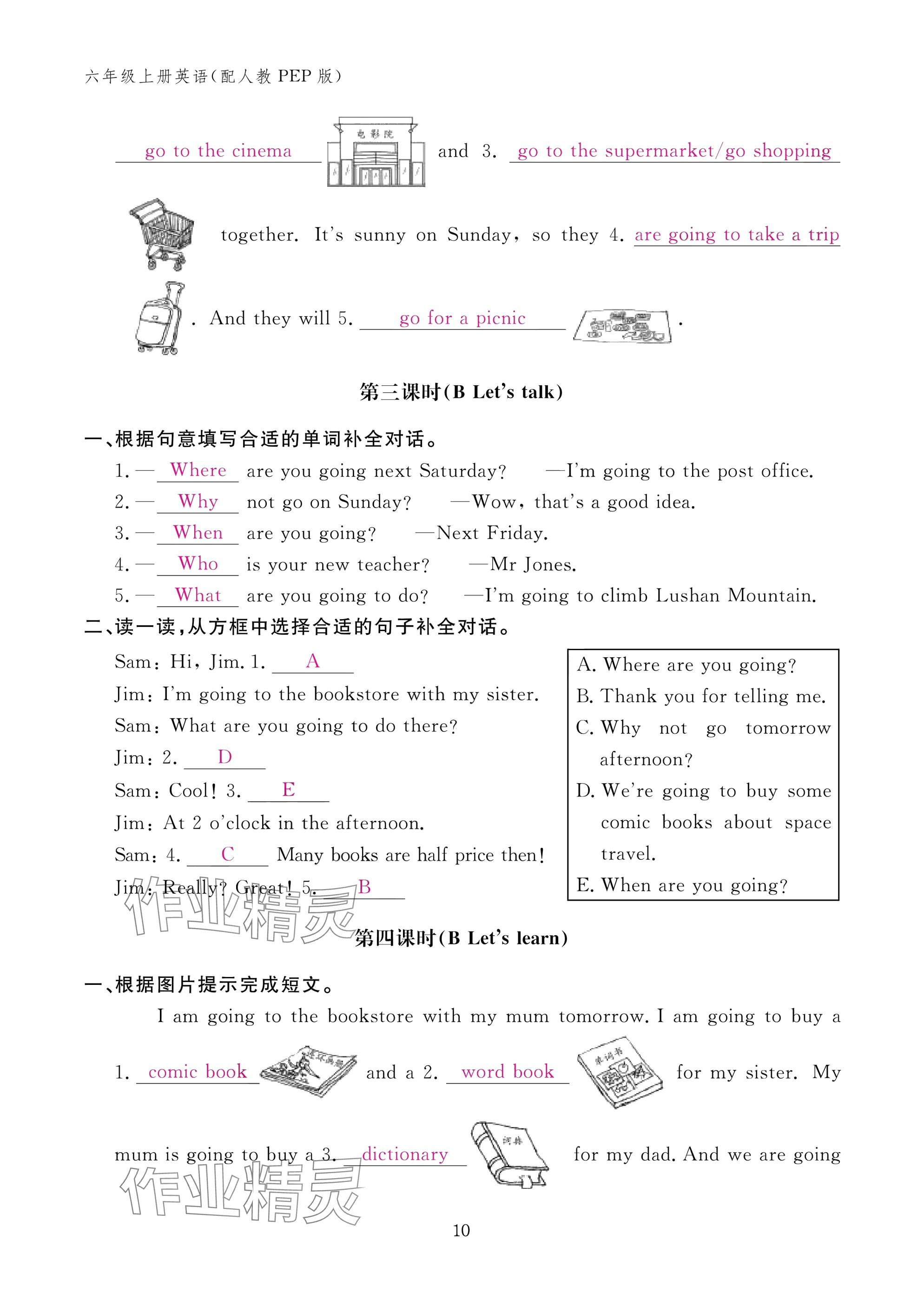 注:目前有些书本章节名称可能整理的还不是很完善,但都是按照顺序排列的,请同学们按照顺序仔细查找。练习册 2024年作业本江西教育出版社六年级英语上册人教版 答案主要是用来给同学们做完题方便对答案用的,请勿直接抄袭。
