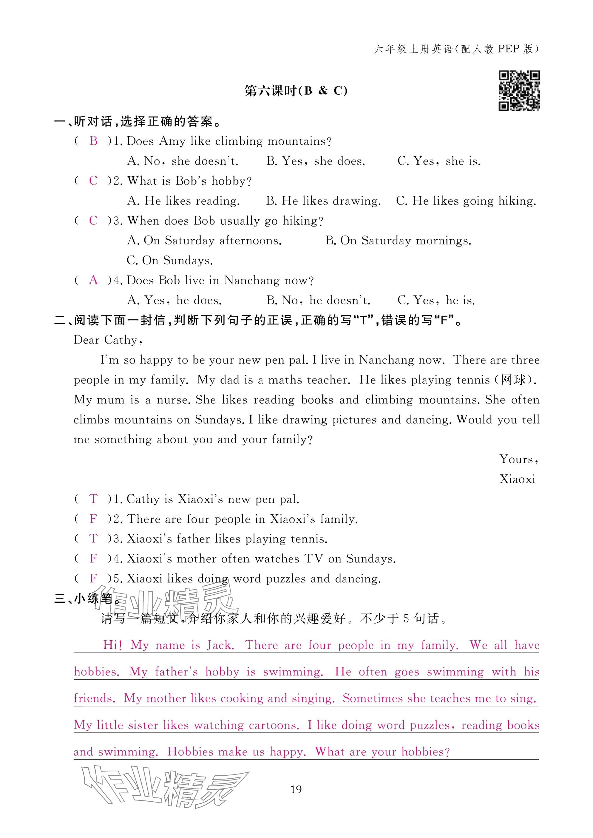 注:目前有些书本章节名称可能整理的还不是很完善,但都是按照顺序排列的,请同学们按照顺序仔细查找。练习册 2024年作业本江西教育出版社六年级英语上册人教版 答案主要是用来给同学们做完题方便对答案用的,请勿直接抄袭。