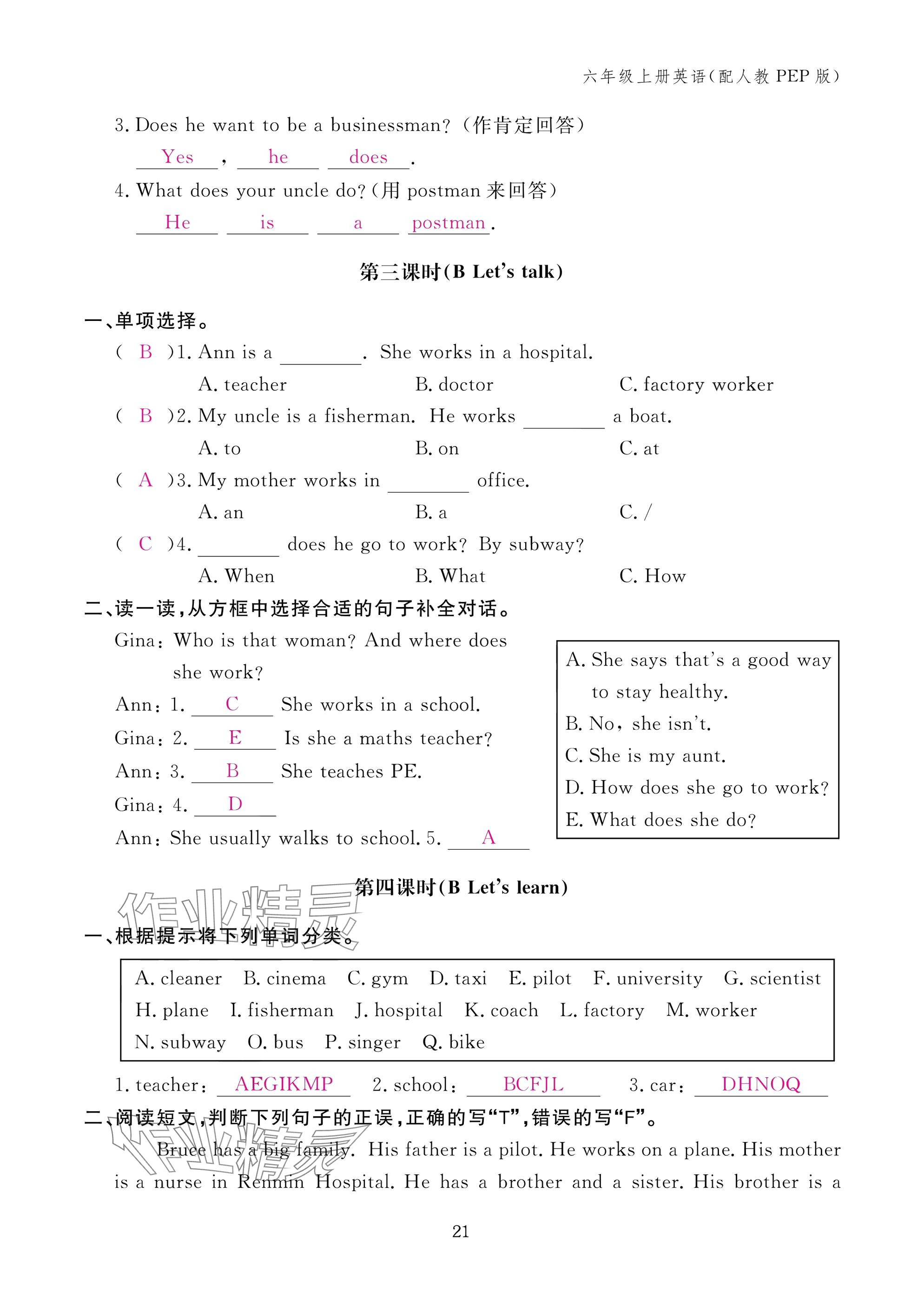 注:目前有些书本章节名称可能整理的还不是很完善,但都是按照顺序排列的,请同学们按照顺序仔细查找。练习册 2024年作业本江西教育出版社六年级英语上册人教版 答案主要是用来给同学们做完题方便对答案用的,请勿直接抄袭。