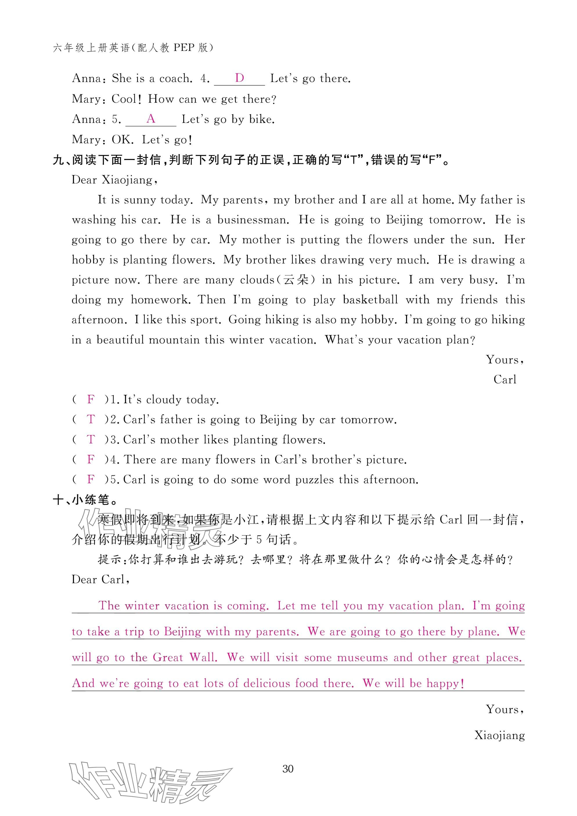 注:目前有些书本章节名称可能整理的还不是很完善,但都是按照顺序排列的,请同学们按照顺序仔细查找。练习册 2024年作业本江西教育出版社六年级英语上册人教版 答案主要是用来给同学们做完题方便对答案用的,请勿直接抄袭。